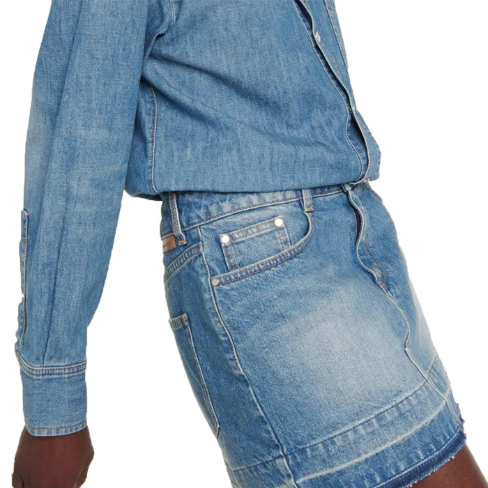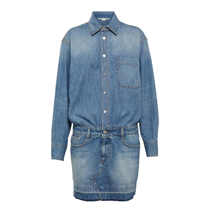 Custom Wholesale Washed Blue Long Sleeve Denim Shirt Dress