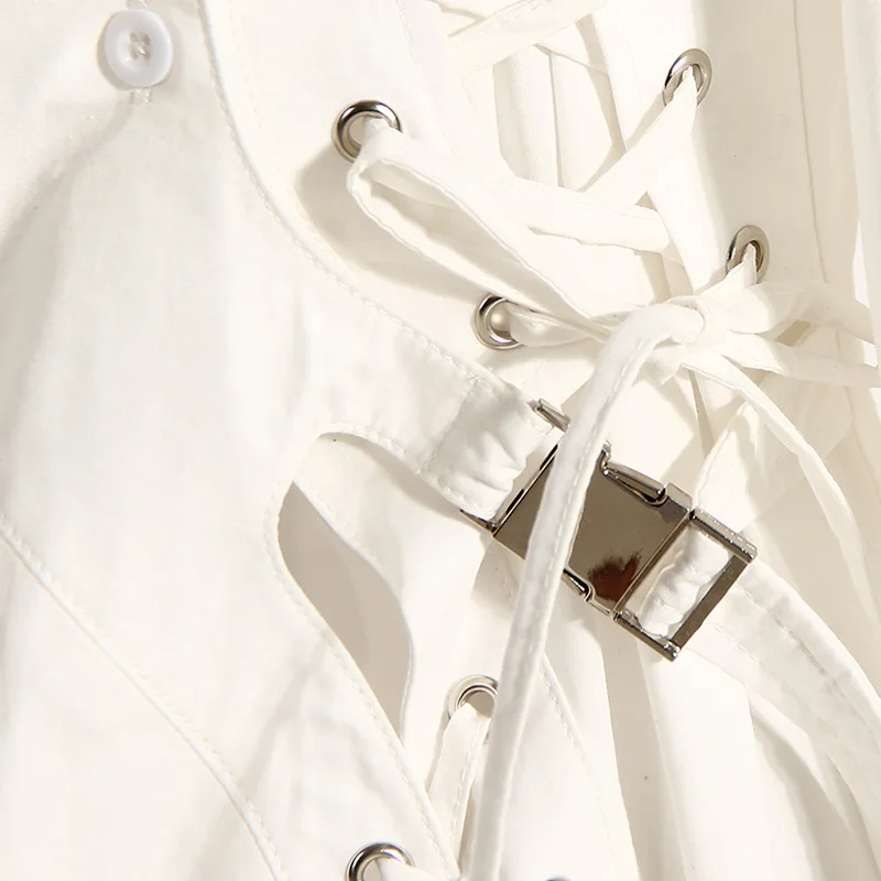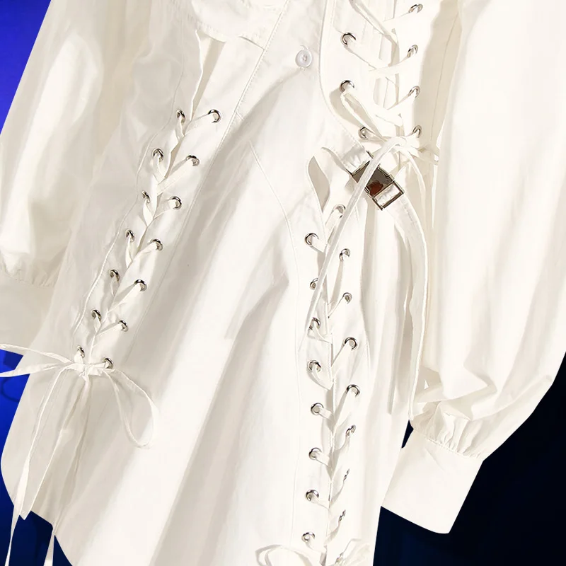 Women's Shirt Dress Spring New Asymmetrical Tie Waist Long Sleeve Lace-Up Dress