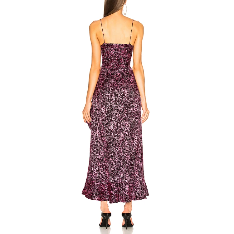 Ladies pleated silk jacquard leopard dress skirt women side slit sexy party dress