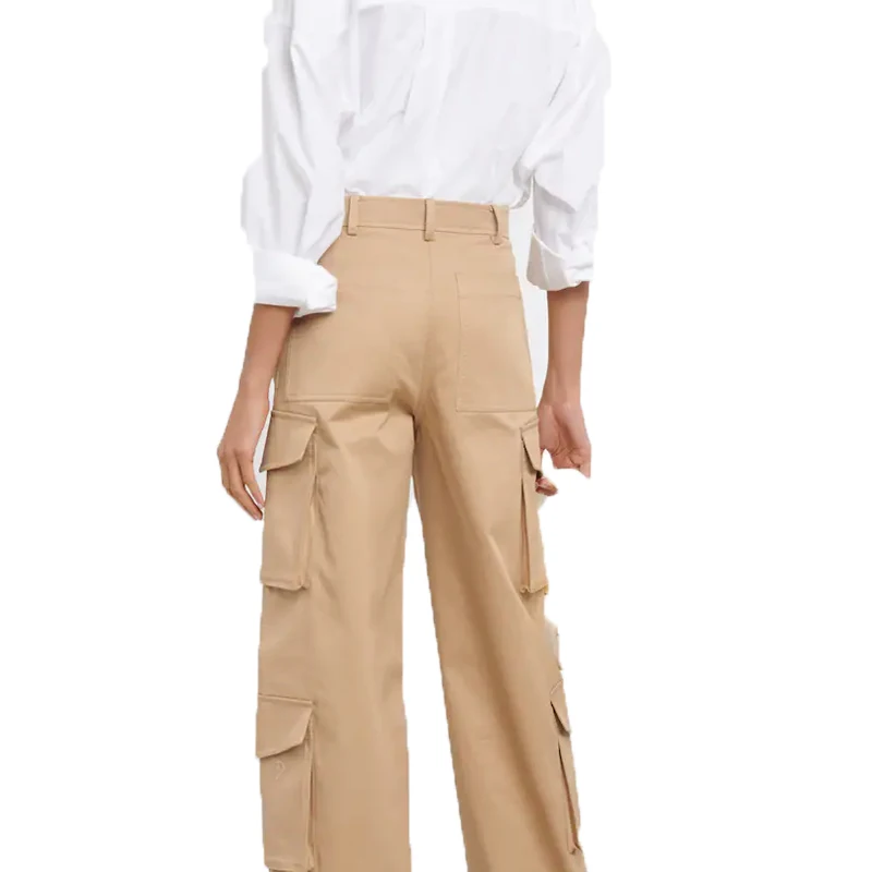 Factory customized wholesale women's low waist jeans Cargo pants slim multi pockets