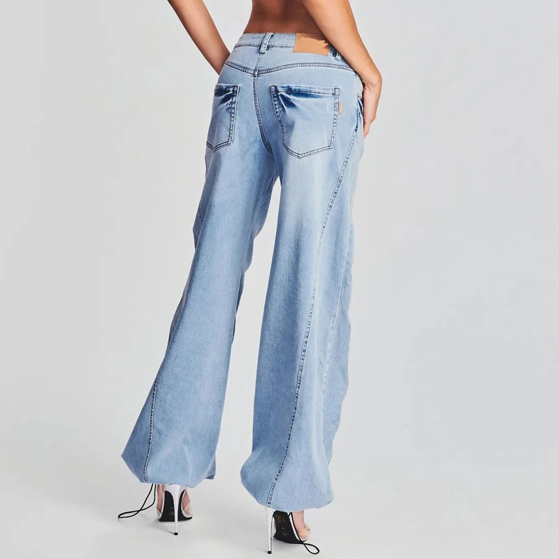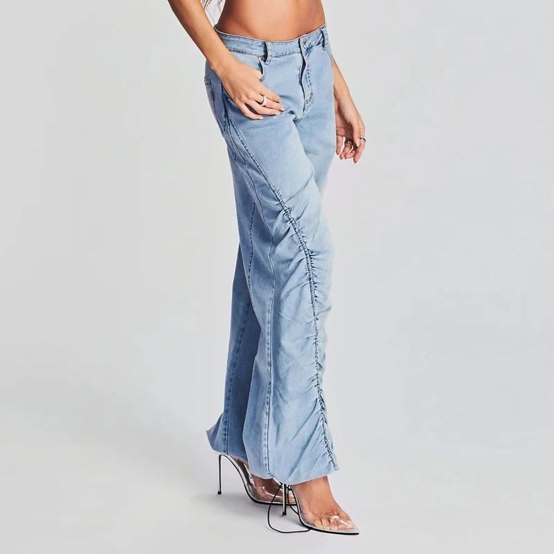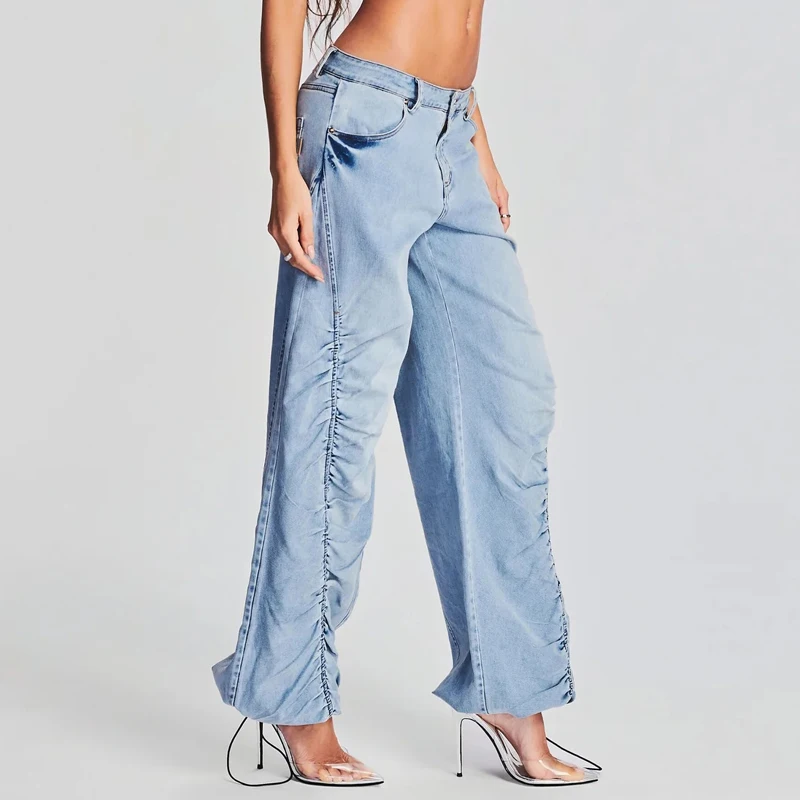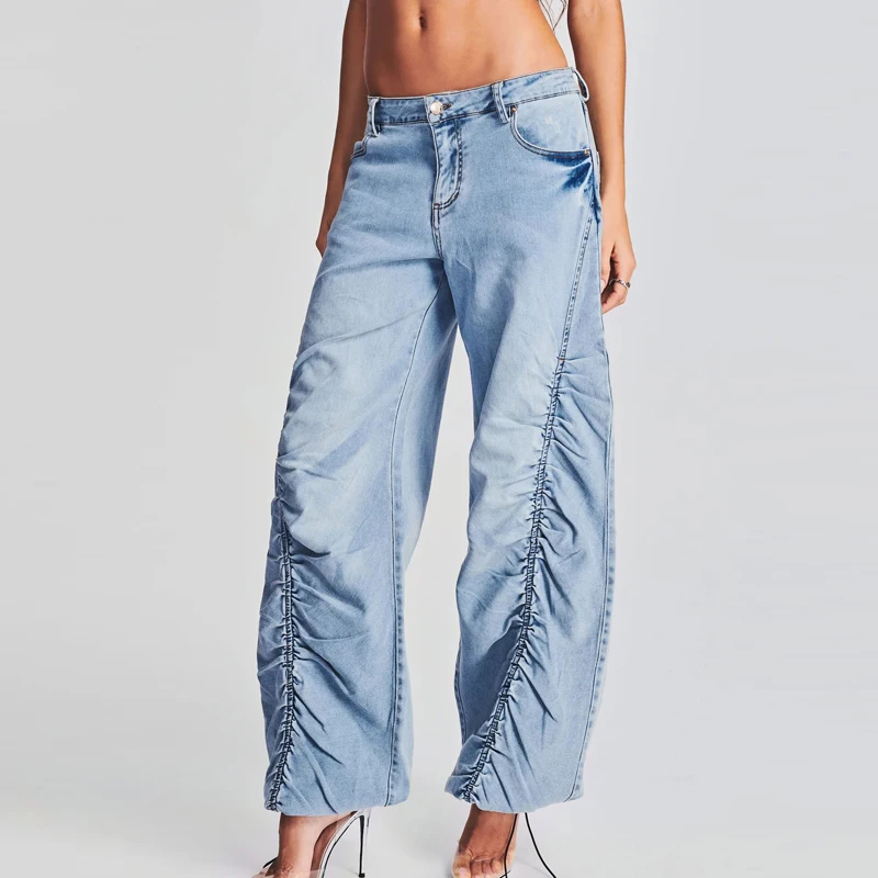Wholesale High Waist Ruched Loose Wide Leg Pants Casual Street Wear Women Denim Jean