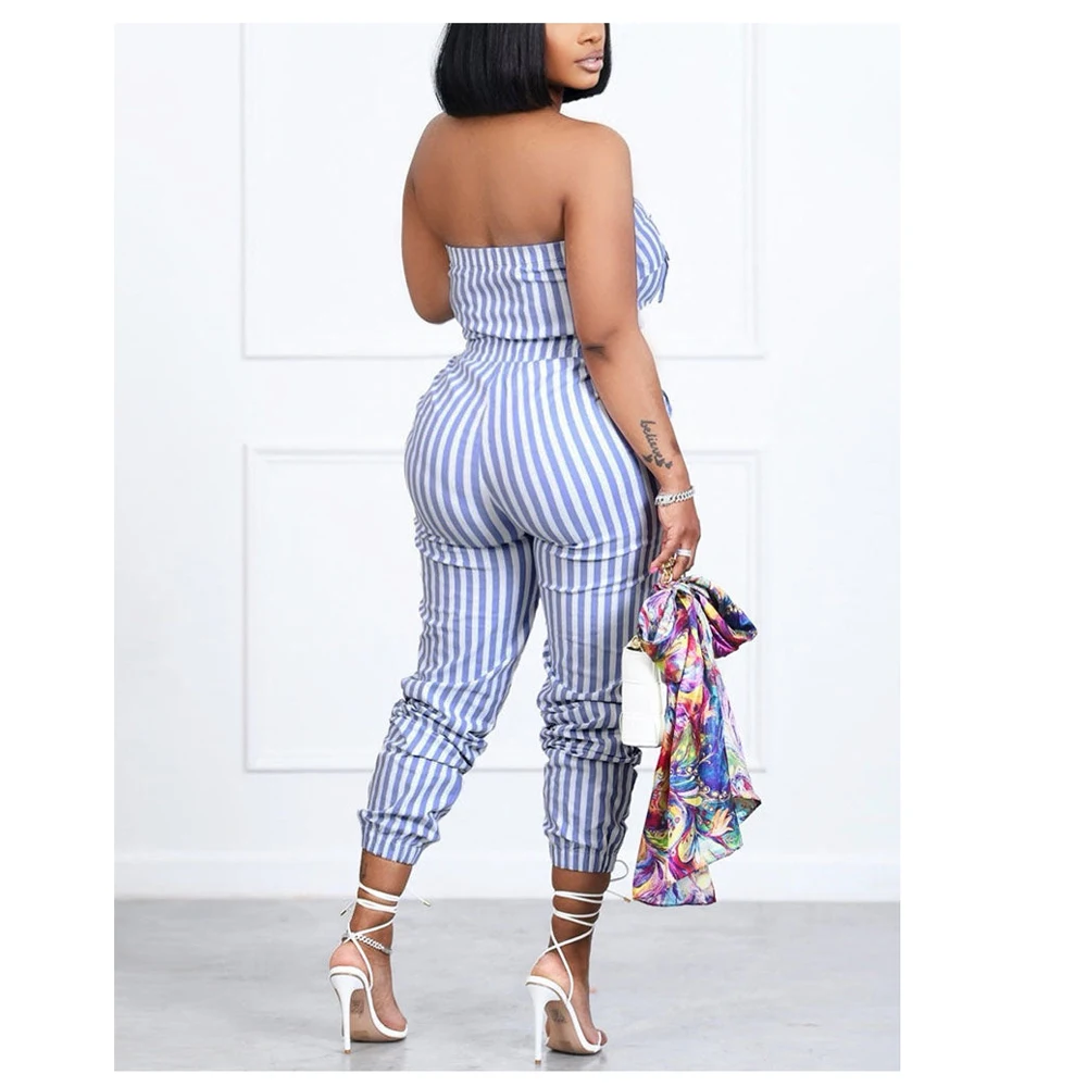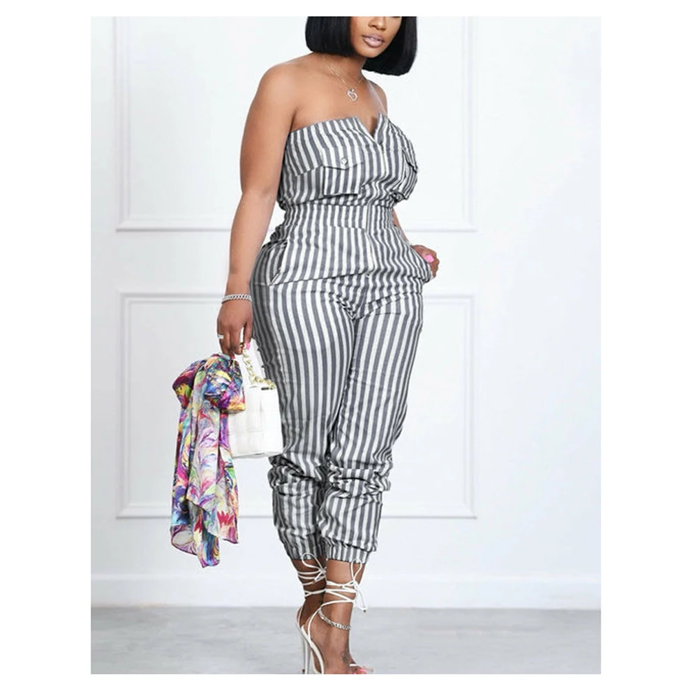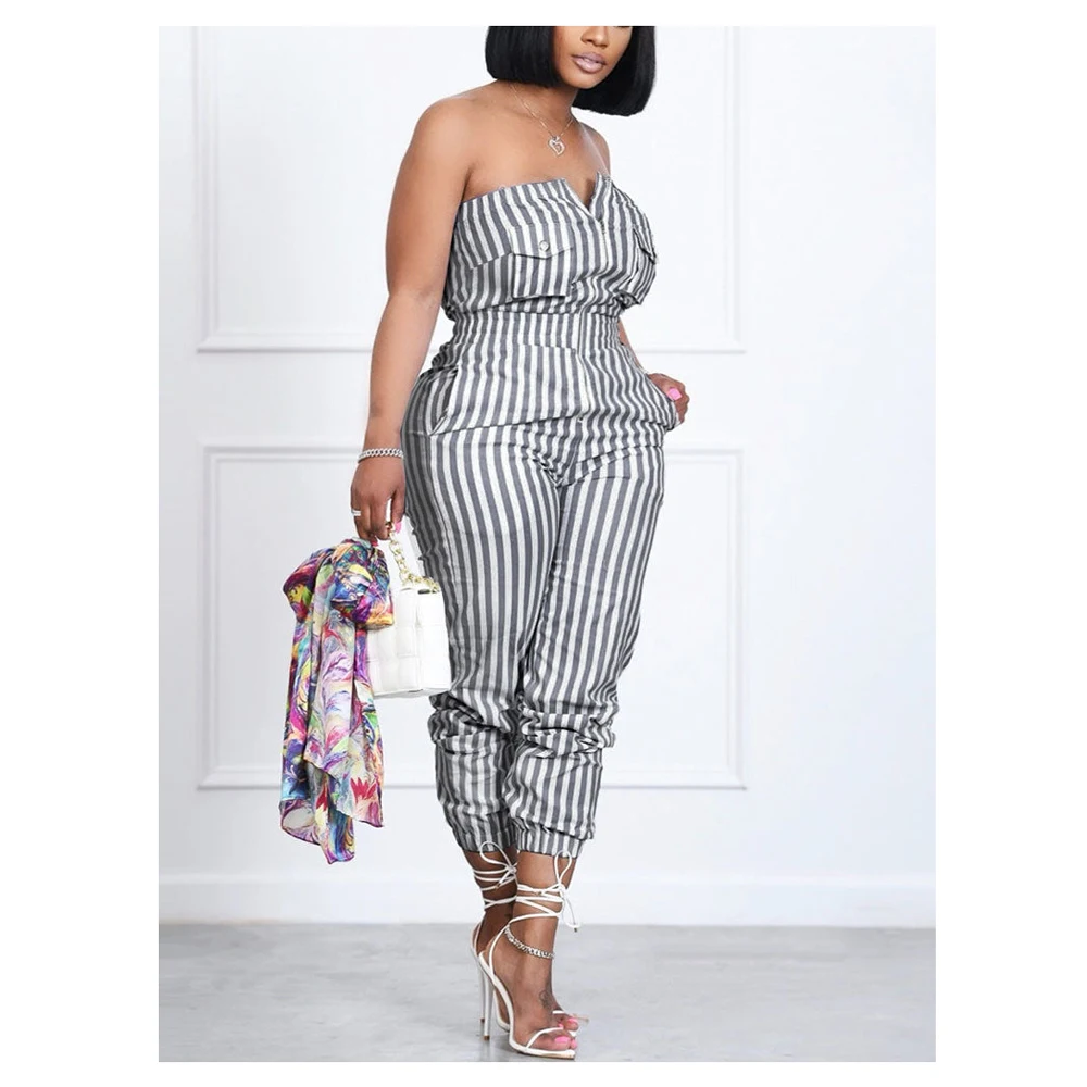 wholesale Pocket Casual Striped Jumpsuit Slim Zipper Front Tube Jumpsuit Overalls