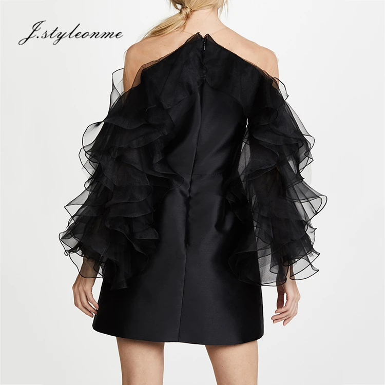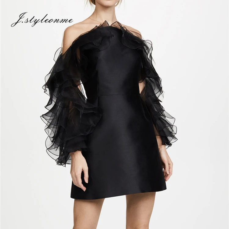 2018 New Ladies Ruffled Long-sleeved Waist Strapless Mini Cocktail Dress