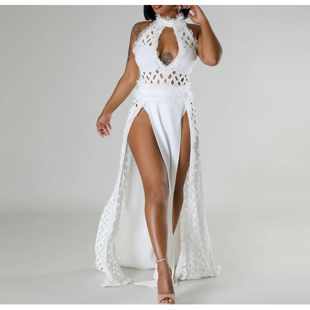 Factories Luxury Sexy Gown Dresses Mock Neck Evening Dress Side High Split Backless Cut Out Party Costume for Women