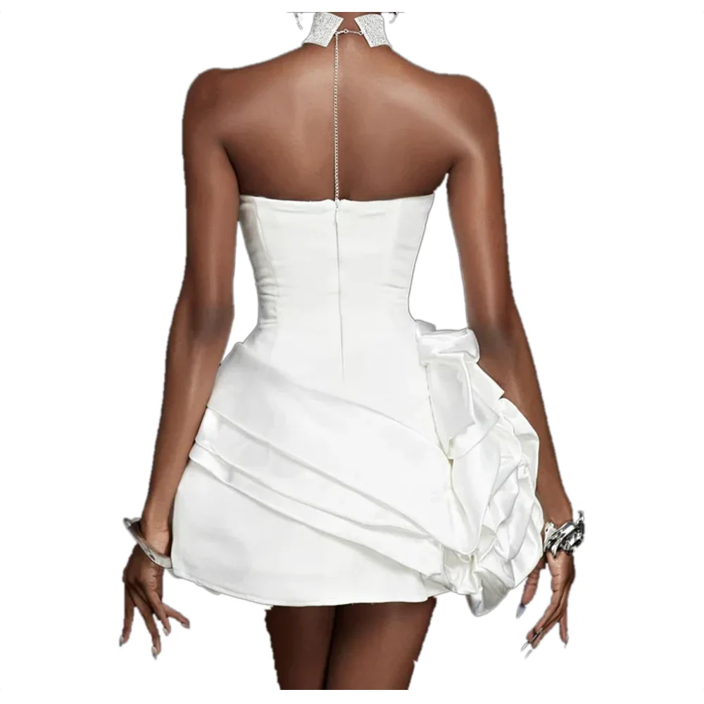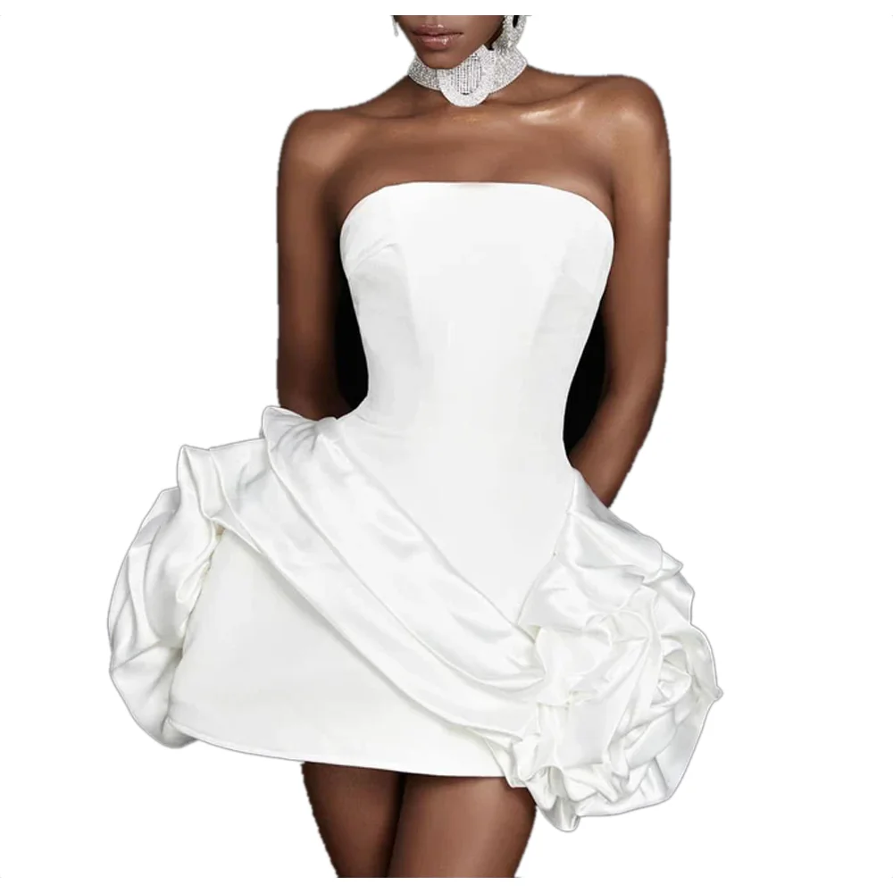 Women White Ruffle Tight Bandage Dress Tube Top Nightclub Sexy Dress Bag Hip Skirt Strapless Ruffle Casual Dresses