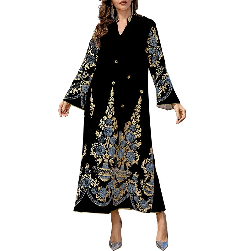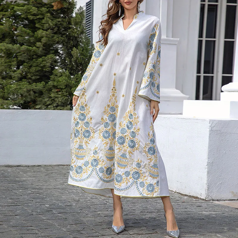 ODM Abaya White Floral Embroidered Evening Gown Dubai Turkey Moroccan Kaftan Saudi Traditional Kurdish Women