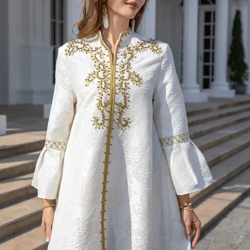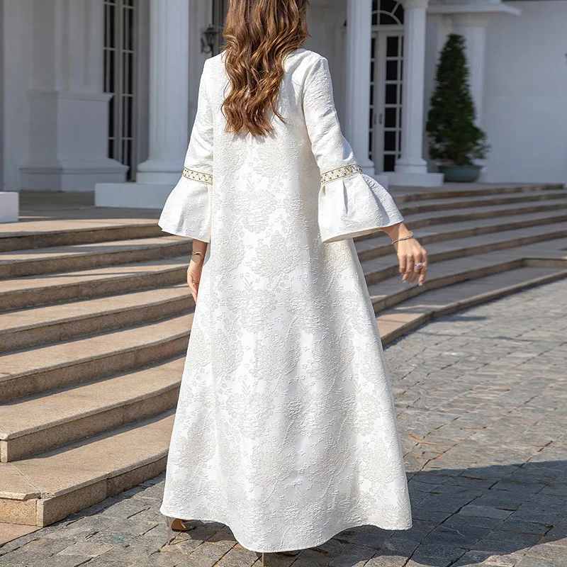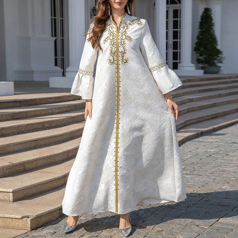 Custom Middle East Muslim Women's Fashion Dress Evening Dress Ethnic Style White Embroidery Women Dress Factory