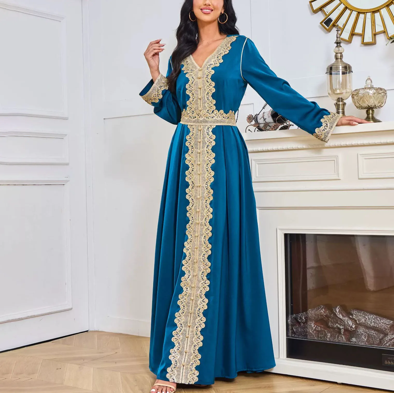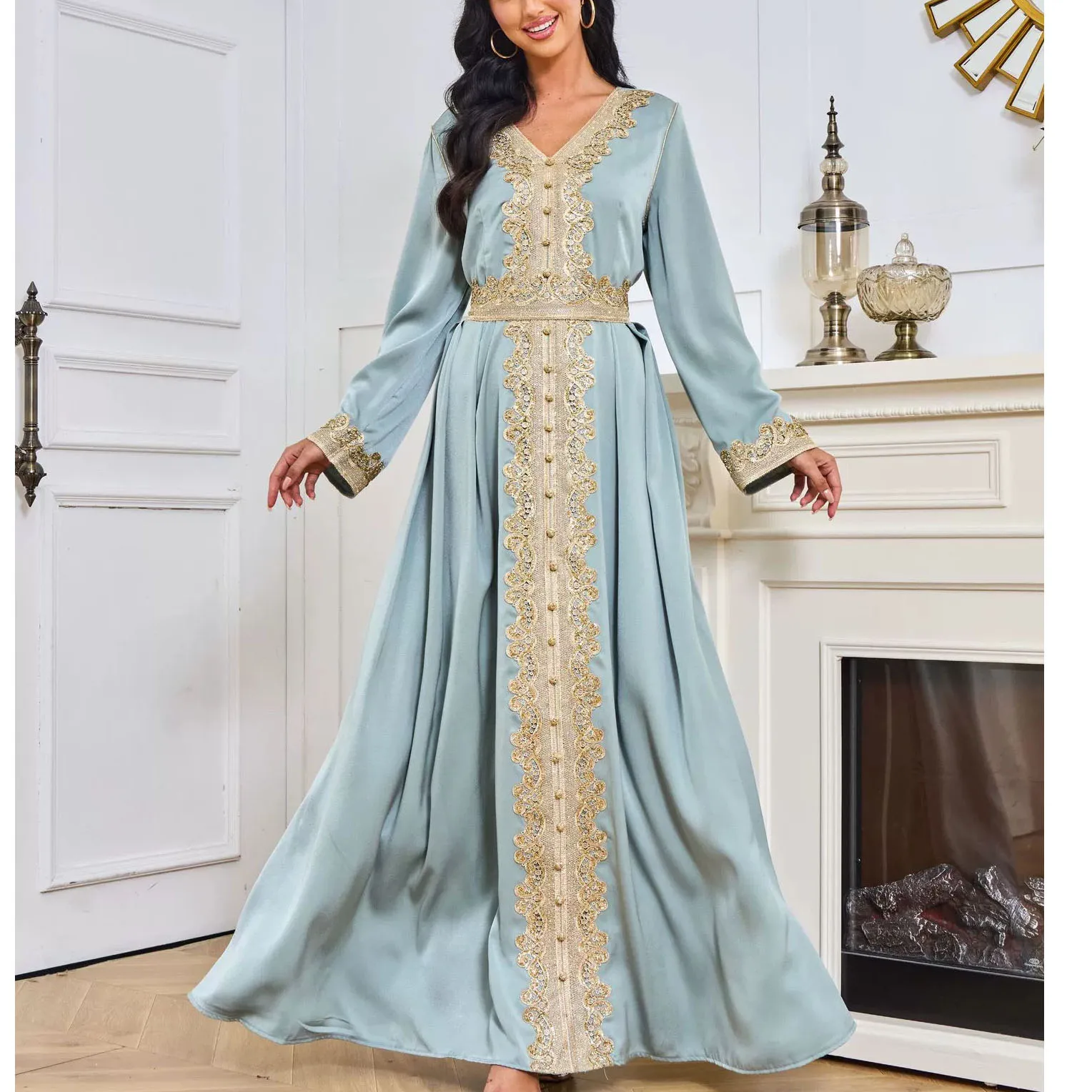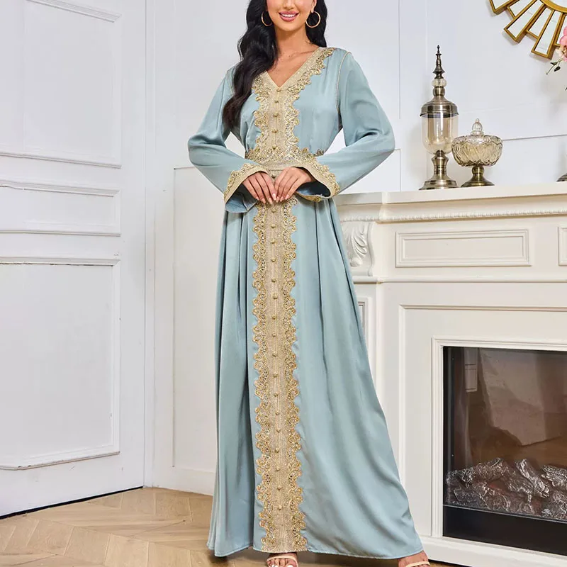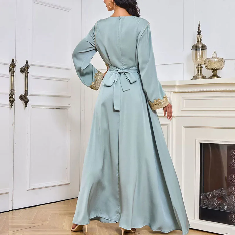 Custom made Kaftan dress luxury beading ladies dubai embroidery elegant long sleeve muslim robe islamic turkish dress factory