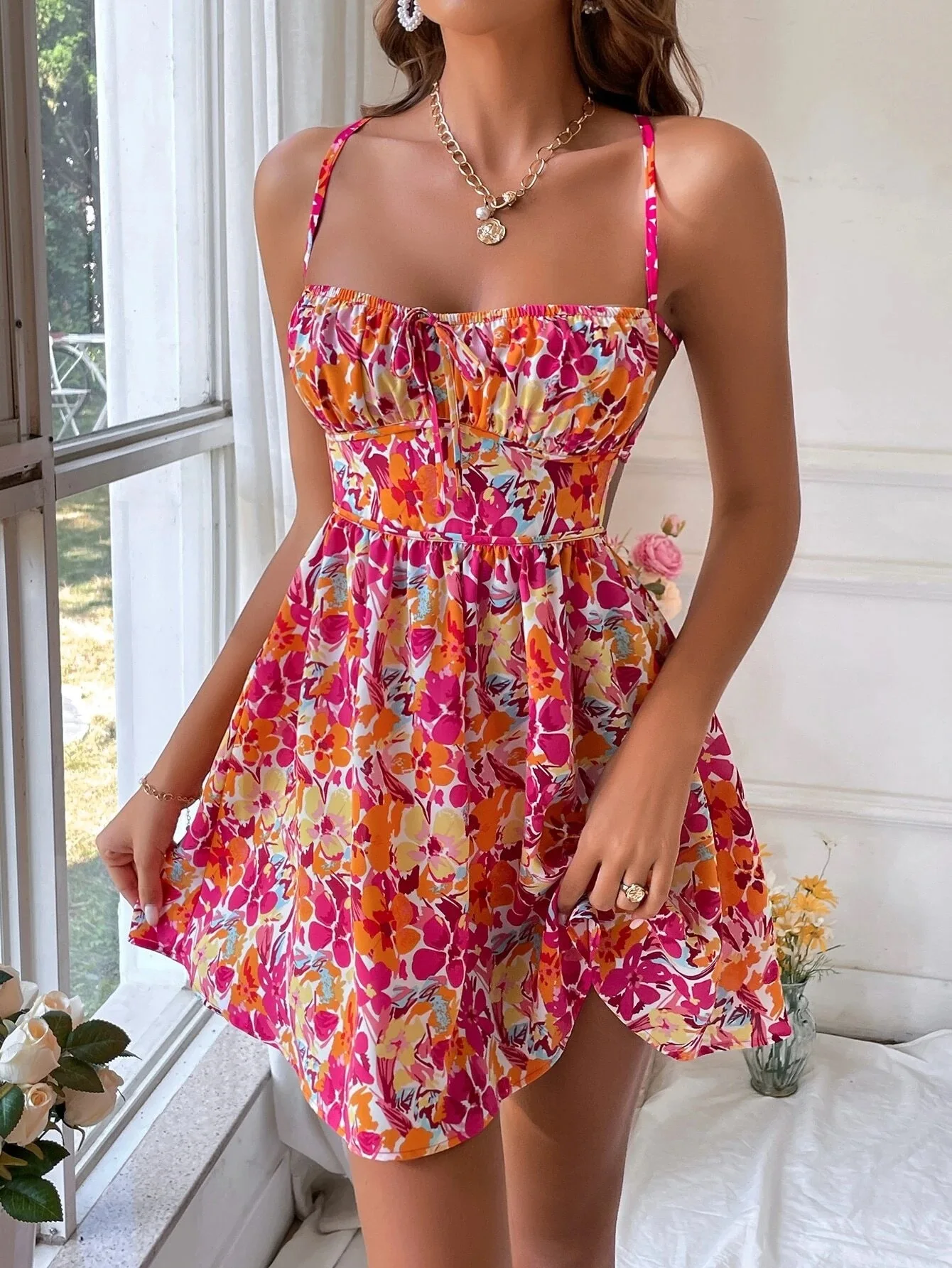 Casual Women's Clothing Women's Summer Dress Vacation Style Floral Square Neck Ladies' Casual Dress