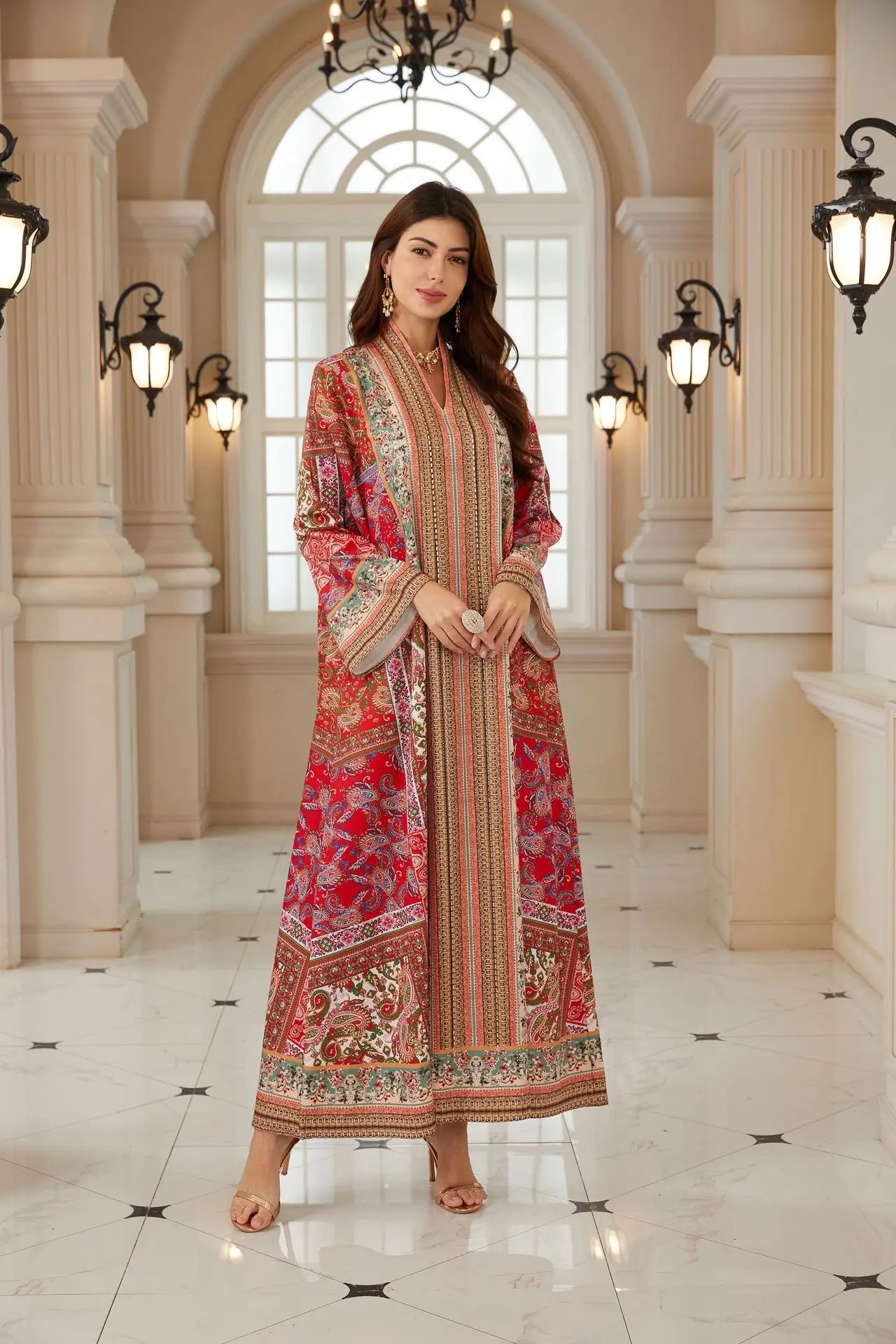 Clothing Manufacturer New Women's Clothing Middle East Dubai Robe Muslim Women Printed Pullover Elegant Ladies' Dress