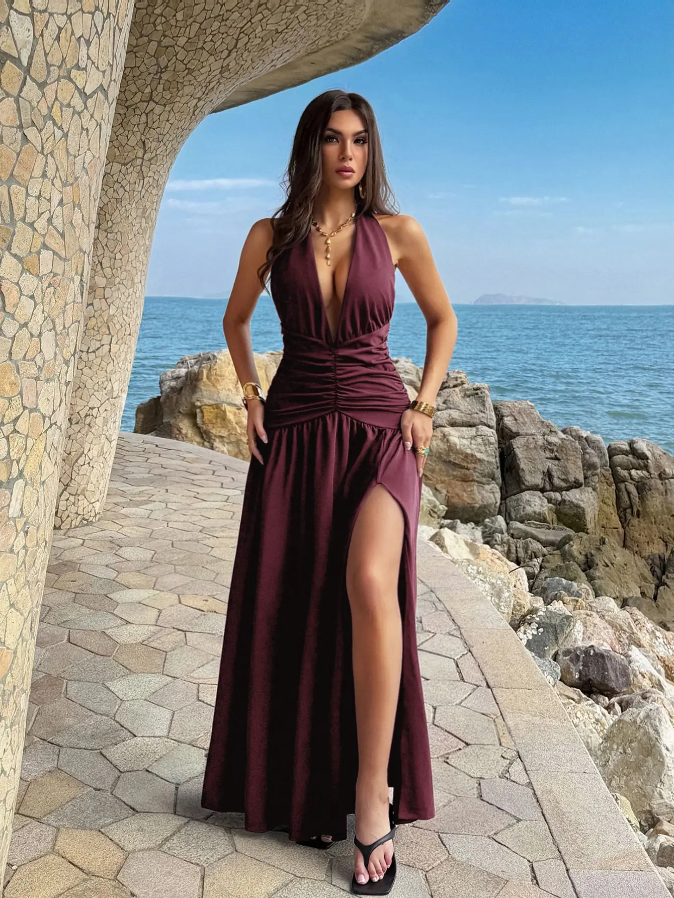 Women's Sexy Clothing Solid Color Deep V-Neck Waist-High Sexy Dress Sleeveless Long Women's Elegant Party Dress