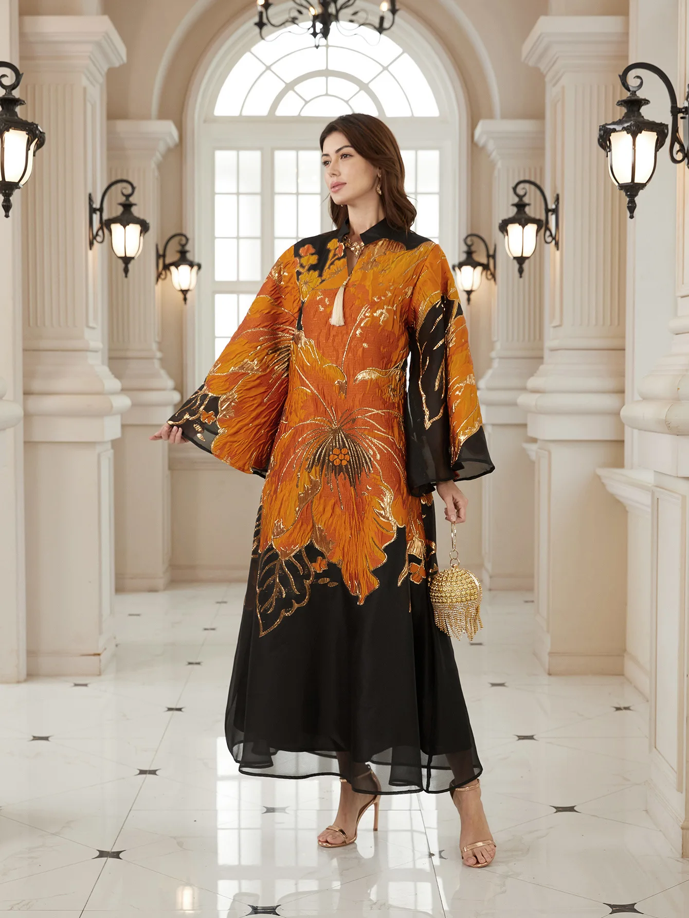 New Women's Clothing Middle East Saudi Arabia Abaya Creative Floral Art Pattern Muslim Long Robe Dress