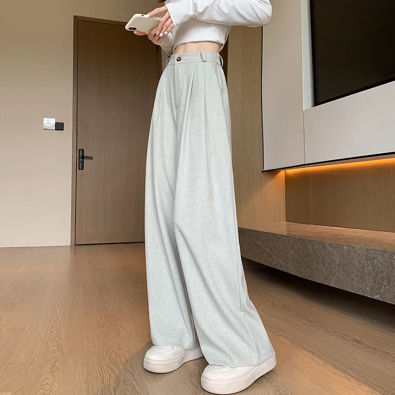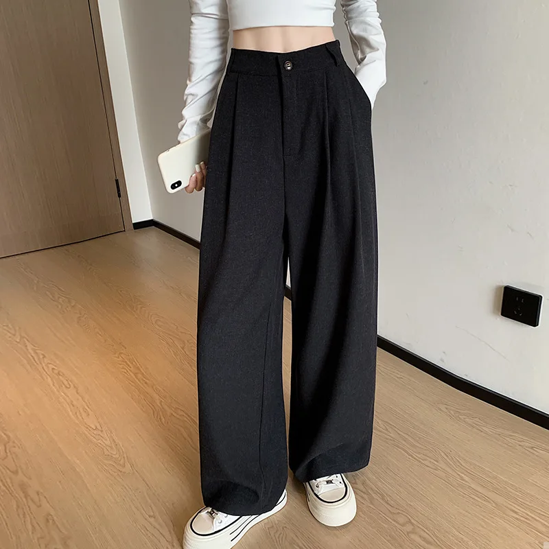 Ladies' Fashion Clothing High-Waisted Drapey Loose Retro Straight Wide-Leg Long Pants Daily Versatile Casual Women's Pants