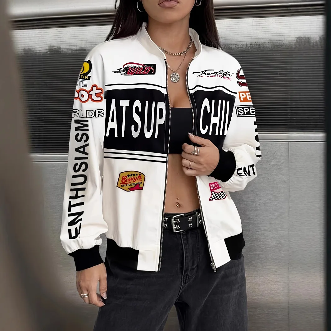 Women's Clothing Supplier Stylish Letter Zipper Stand-up Collar Long-sleeved Ladies Jacket Fashionable Ladies Knit Tops