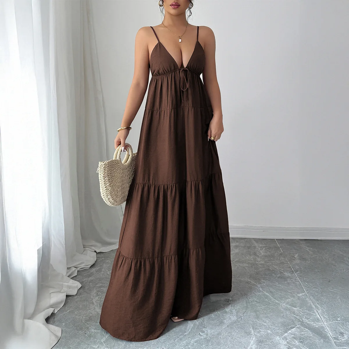 Women's Fashion Clothing New Women's Dresses Backless Sexy V-Neck Slit Dresses Women's Summer Casual Dresses