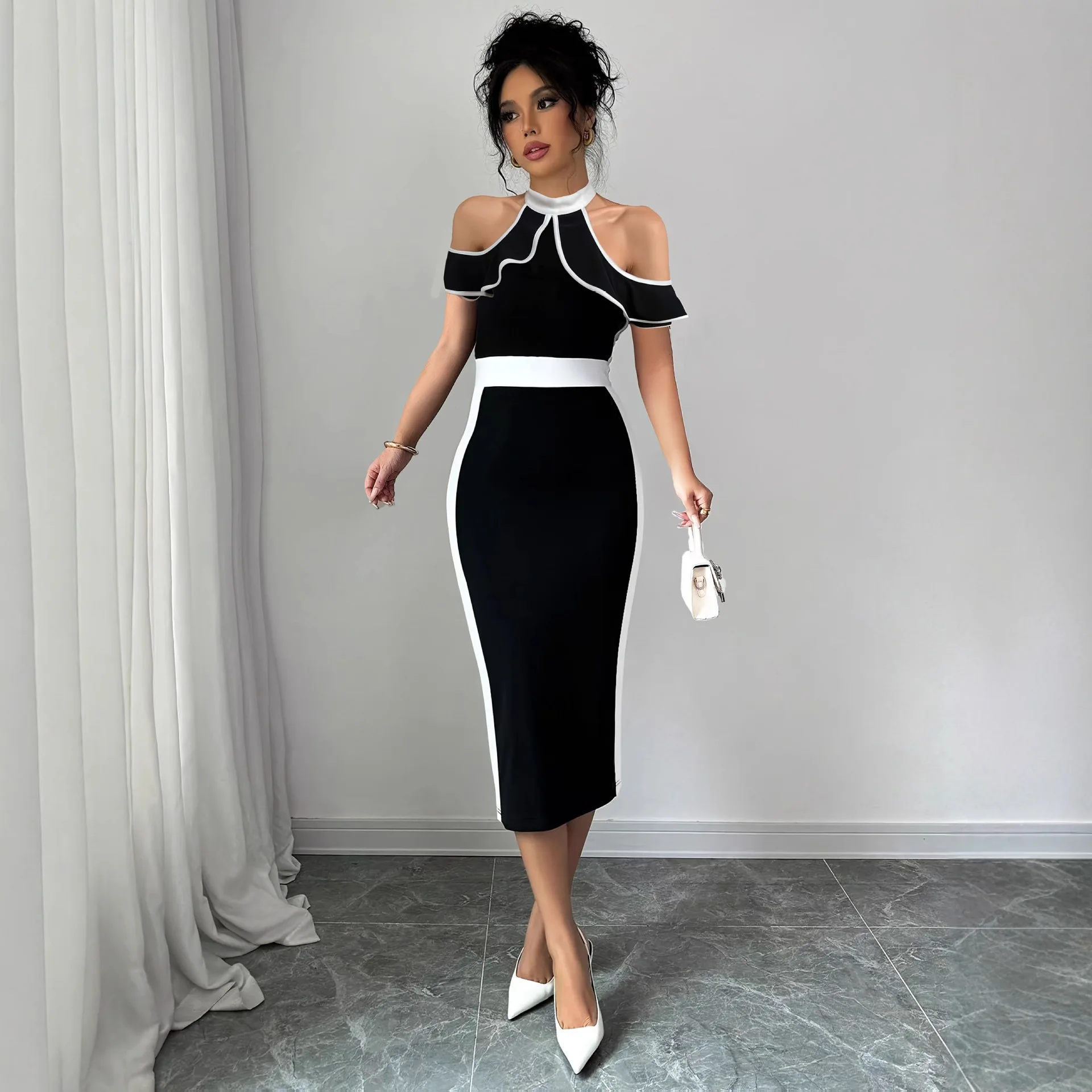 Women's Clothing Supplier New Summer Fashion Sleeveless Ruffled Sleeve Waist Cinching Elegant Ladies Dress
