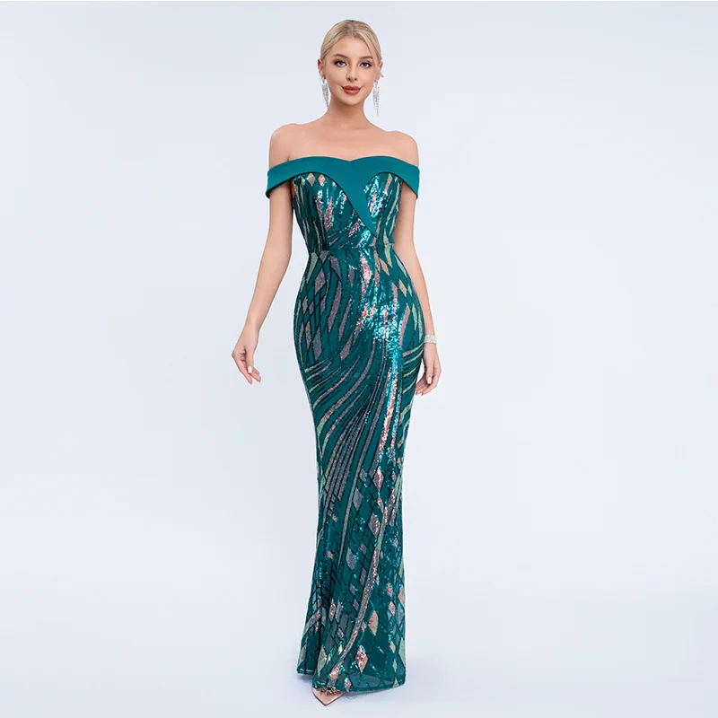 New Party Clothing One-Shoulder Mermaid Sequin Women's Evening Gown Slim-Fitting and Figure-Enhancing Elegant Dress for Ladies