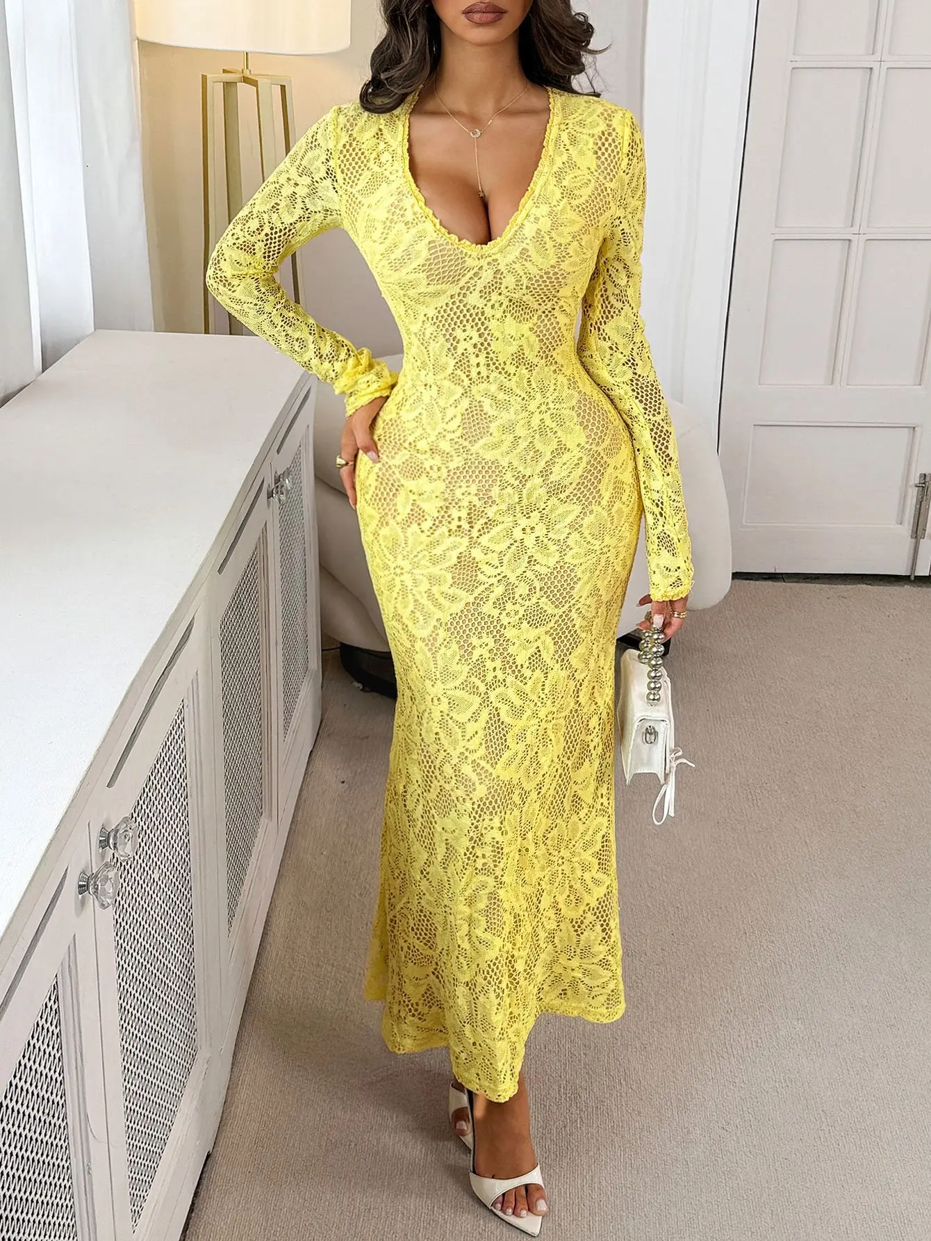 Clothing Manufacturer New Women's Dress Fashion Lace Long-sleeved Long Dress Ladies' Elegant Dress