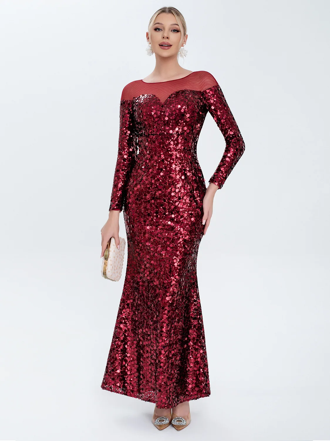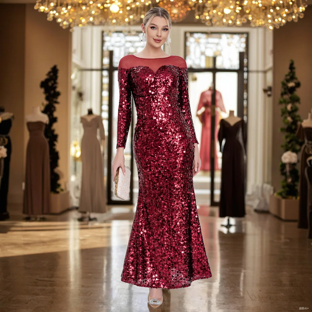 Clothing Manufacturer Pearl Bead Long Sleeve Ladies Evening Gown Sequin Mermaid Dress Women's Party Wear