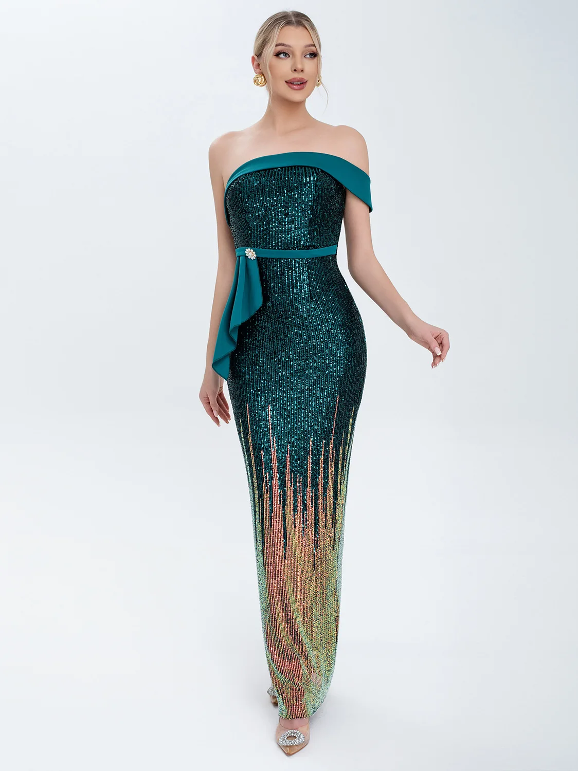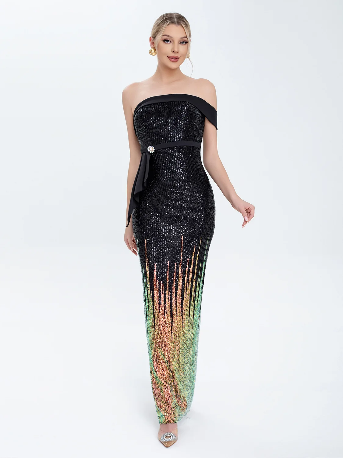 Clothing Manufacturer New Women's Dress Gradient Beaded Long Fish Tail Sequin Ladies Evening Gown Women's Party Clothes