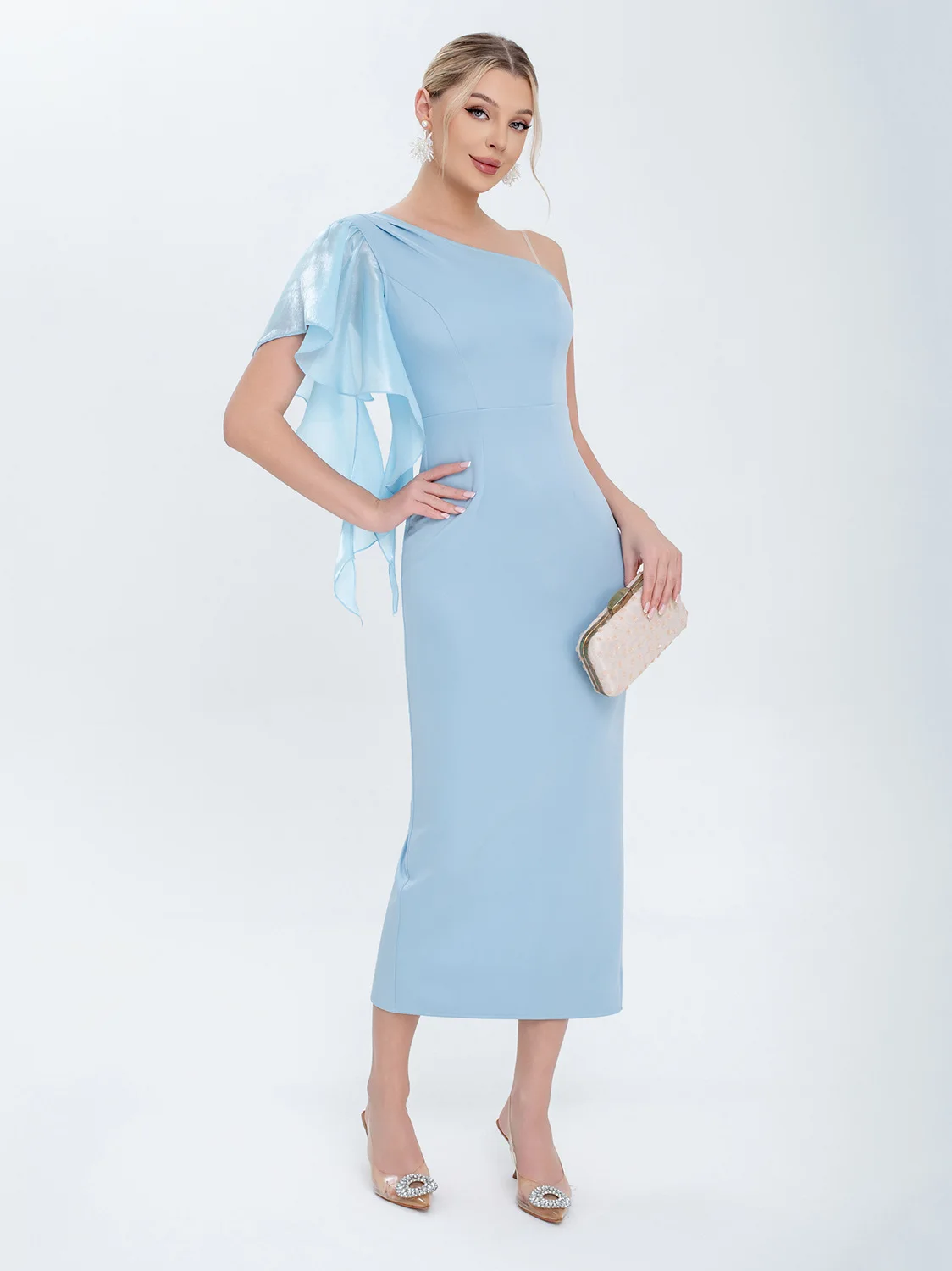 Women's New Elegant Off-Shoulder Asymmetrical Split Floor-Length A-Line Evening Gown Party Wear