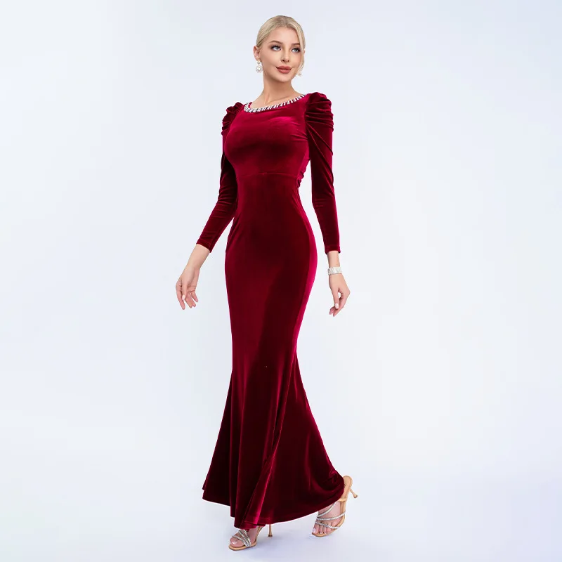 ZYHT 73902 Dark Green Blue Long Sleeve Simple Elegant Evening Dress Customize High End Women Clothing Manufacturer