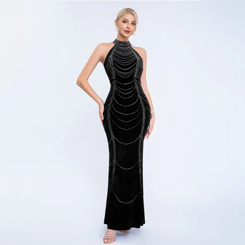 New Style Satin Beaded Off-the-Shoulder Long Dress Elegant Women's Dress Ladylike Evening Gown for Women Party Costume