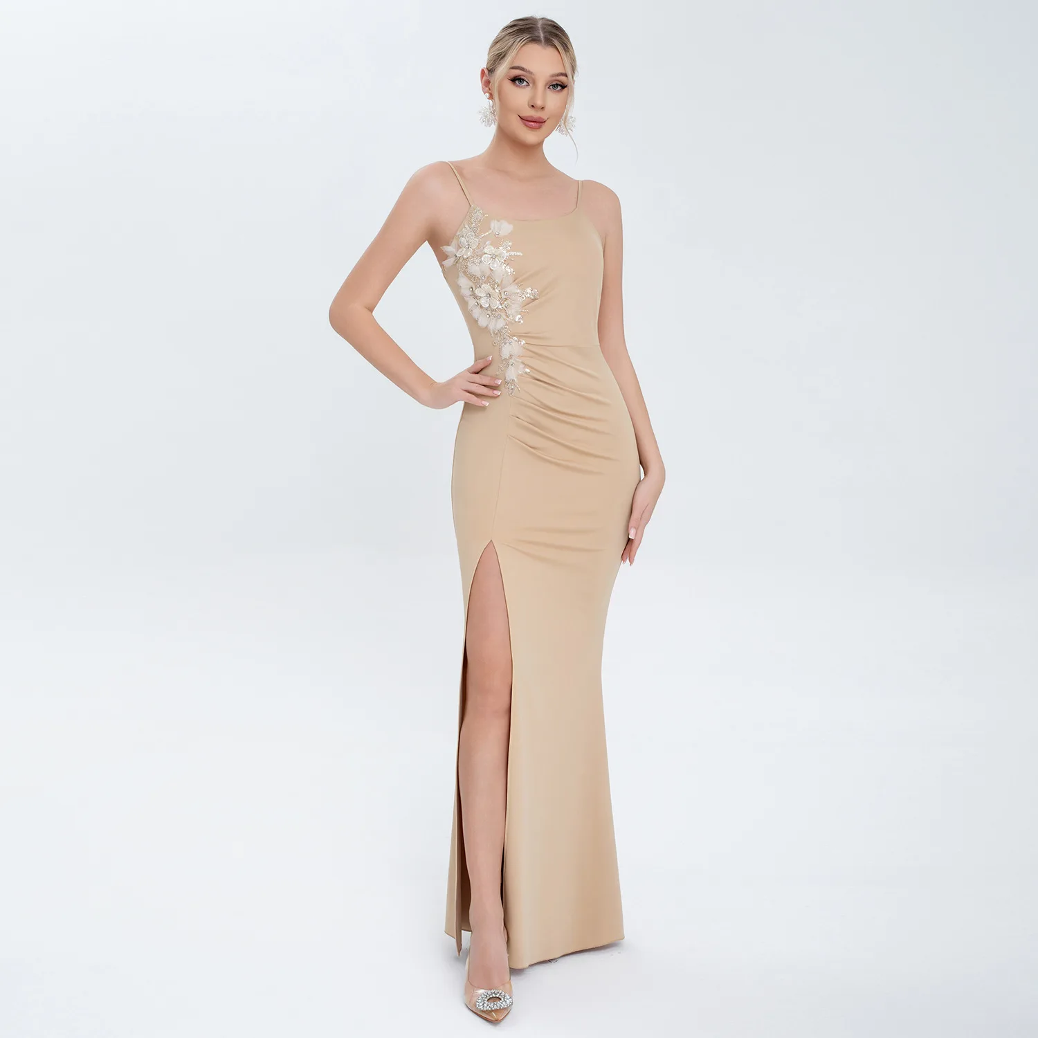 Fashion Manufacturer New Style Embroidered Net Skirt with Side Slit Long Dress Women's Elegant Dress Women's Evening Gown