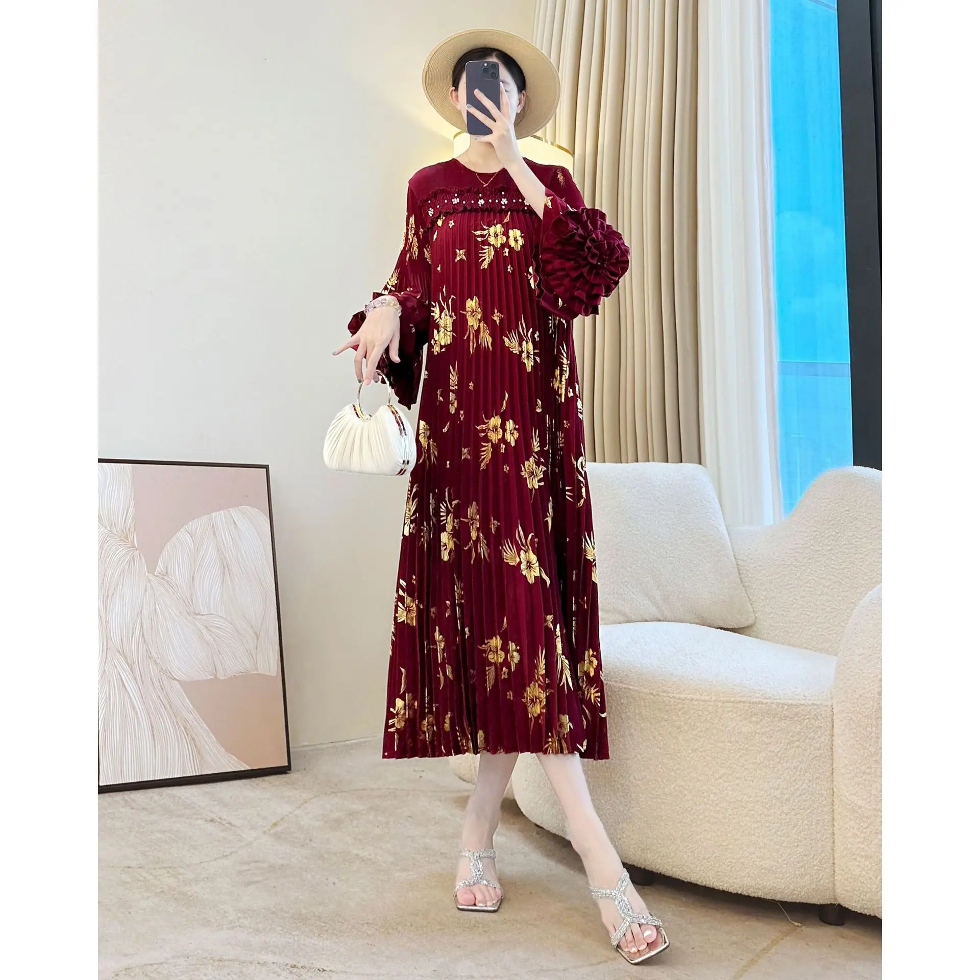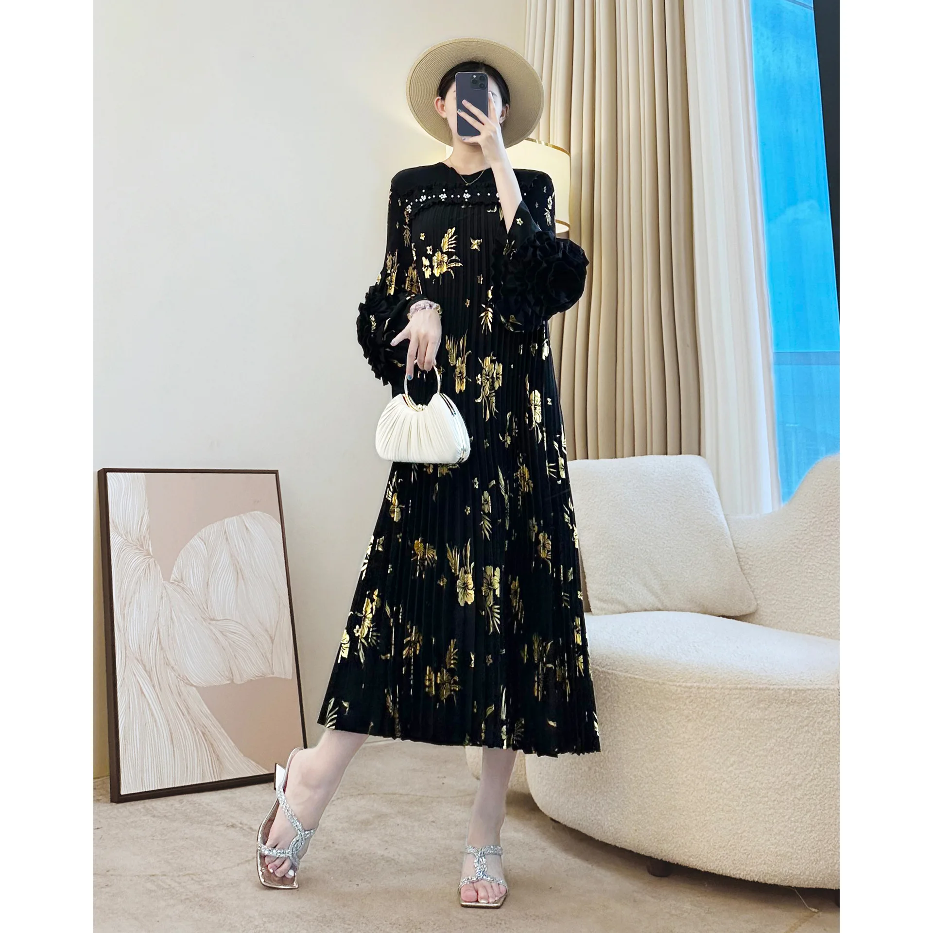Autumn New Elegant Fashionable Casual Dress for Ladies High-End Chinese Style with Foreign Style Loose Pleated Women's Dress