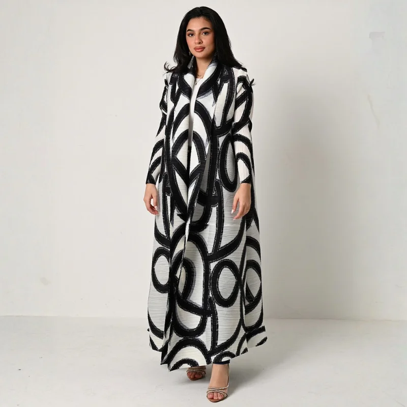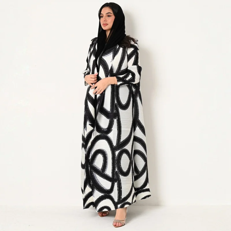 Middle Eastern Muslim Women's Fashion Abaya Design Plus Size Loose Casual Long Robe Miyake Pleated Abaya Factory Wholesale