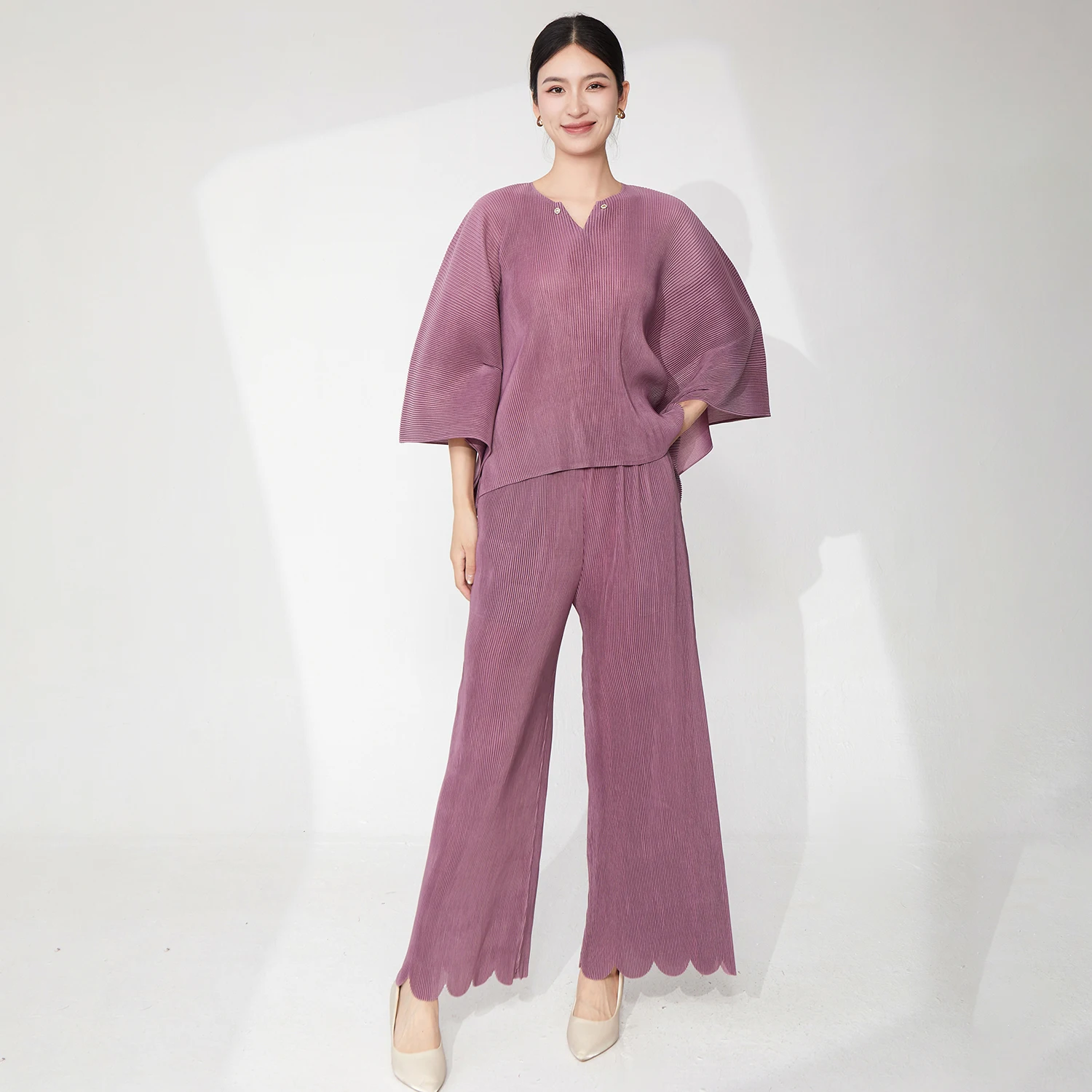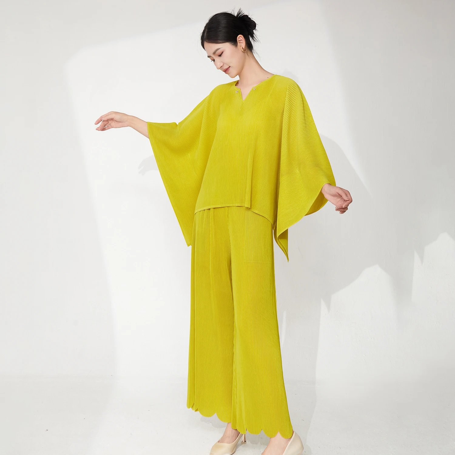 Miyake Casual Set Women's Summer Large Size Loose Irregular T-shirt Top Casual Straight Pants Two-piece Set Women's Fashion Sets
