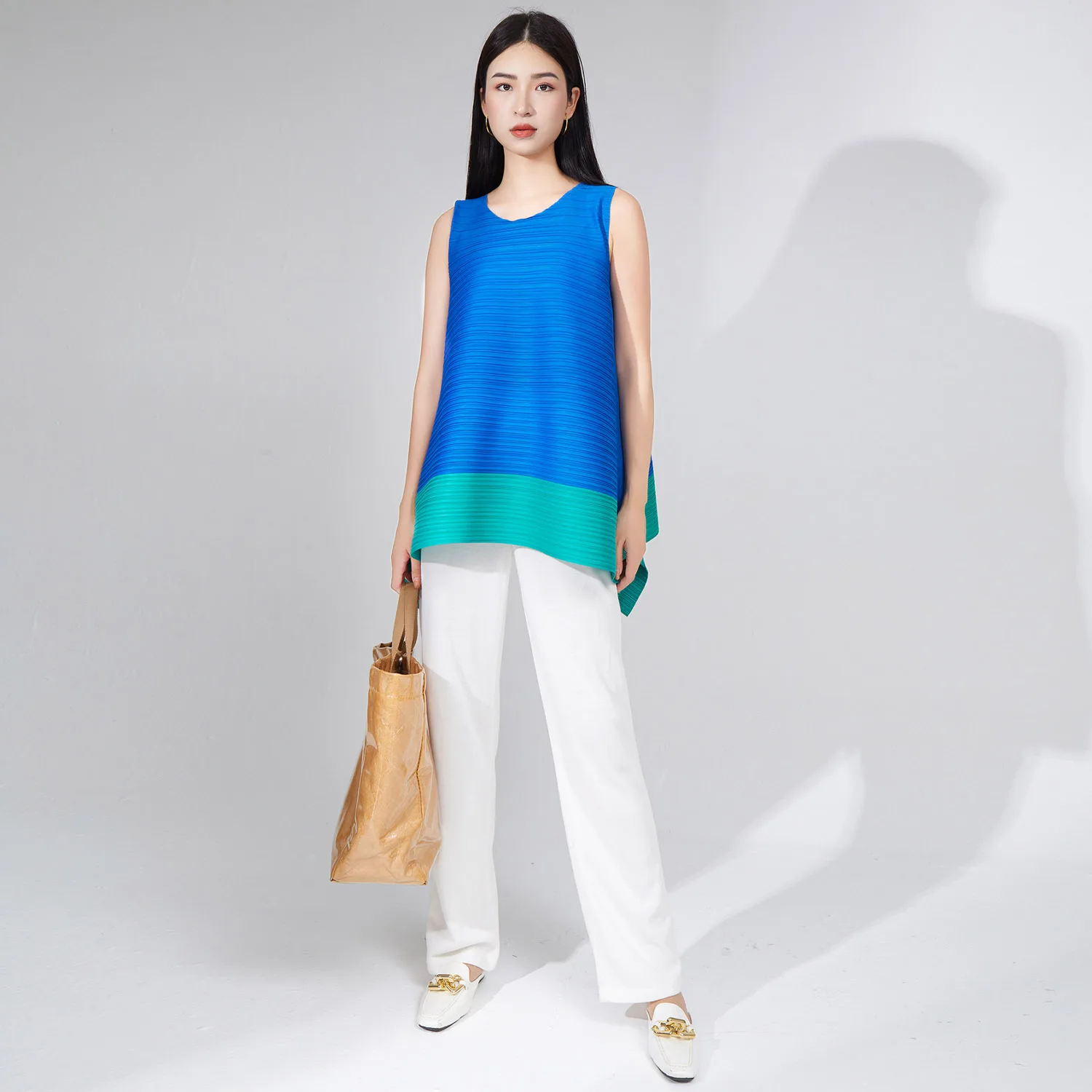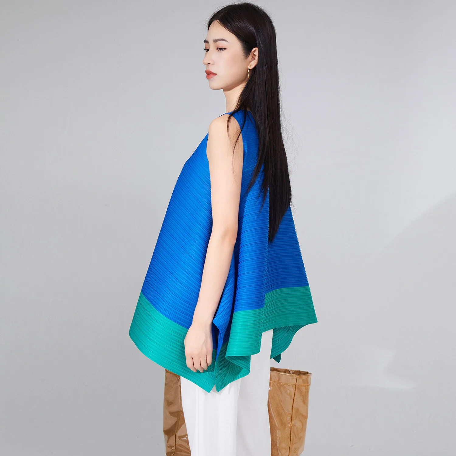 2025 Fashion Sleeveless T-Shirt for Women Unique Pleated Loose Fit Vest Top Stylish and Slimming