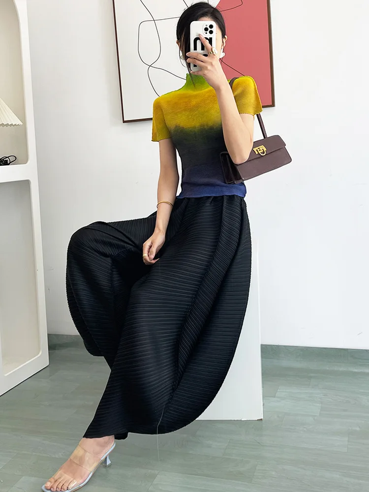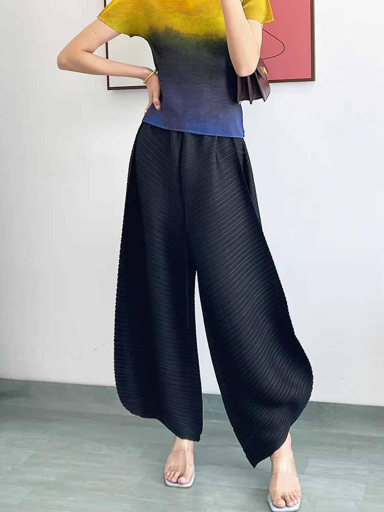 Miyake Pleated Pants Women's Casual Black High-Waisted Wide-Leg Pants Loose Harem Pants Pleated Harem Trousers