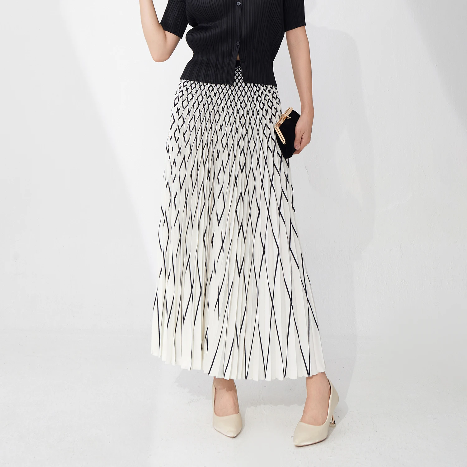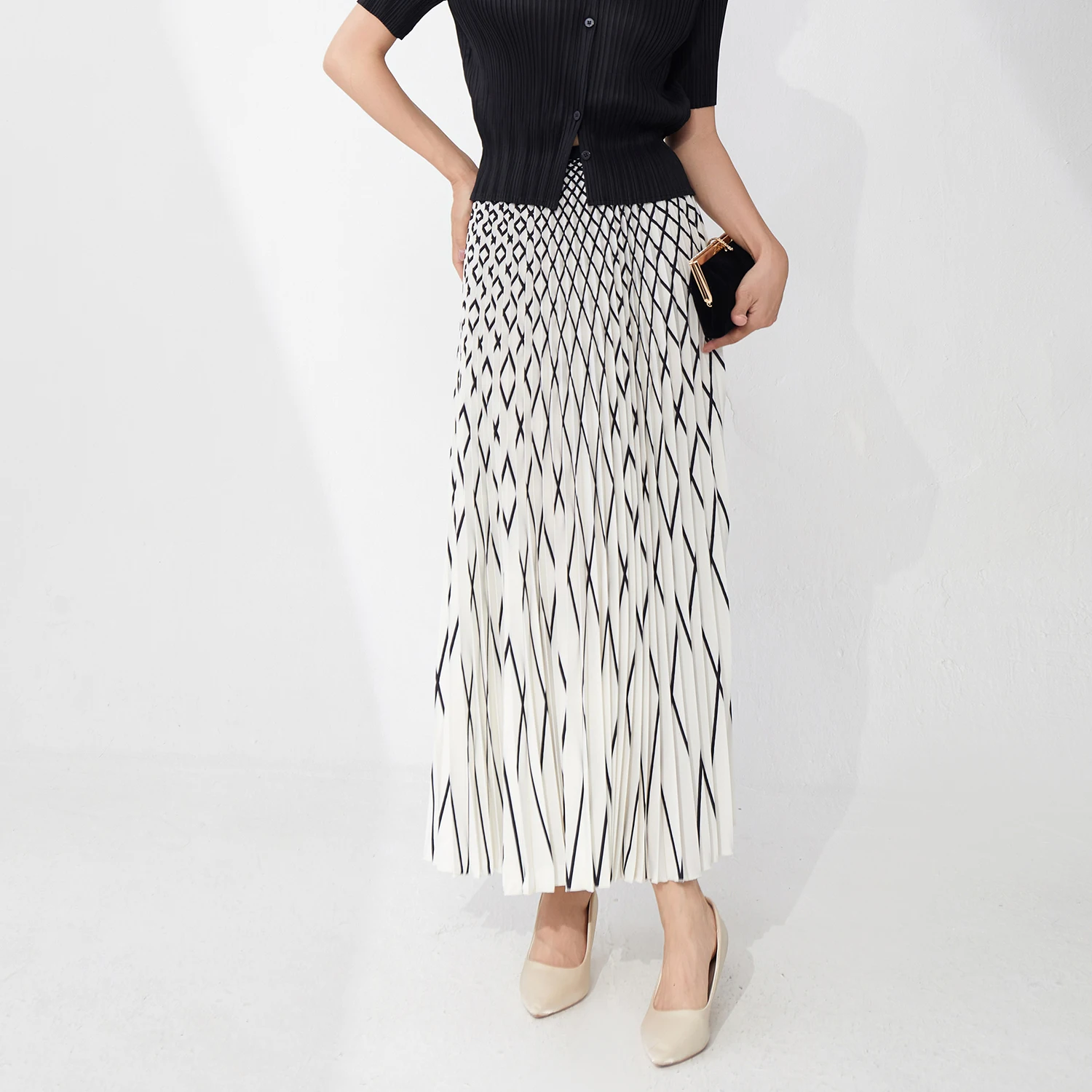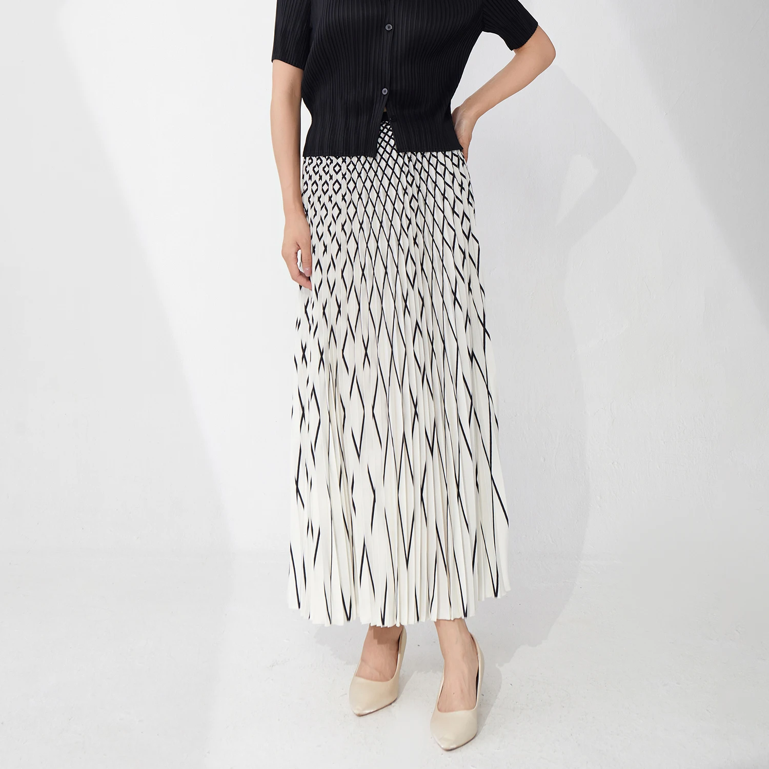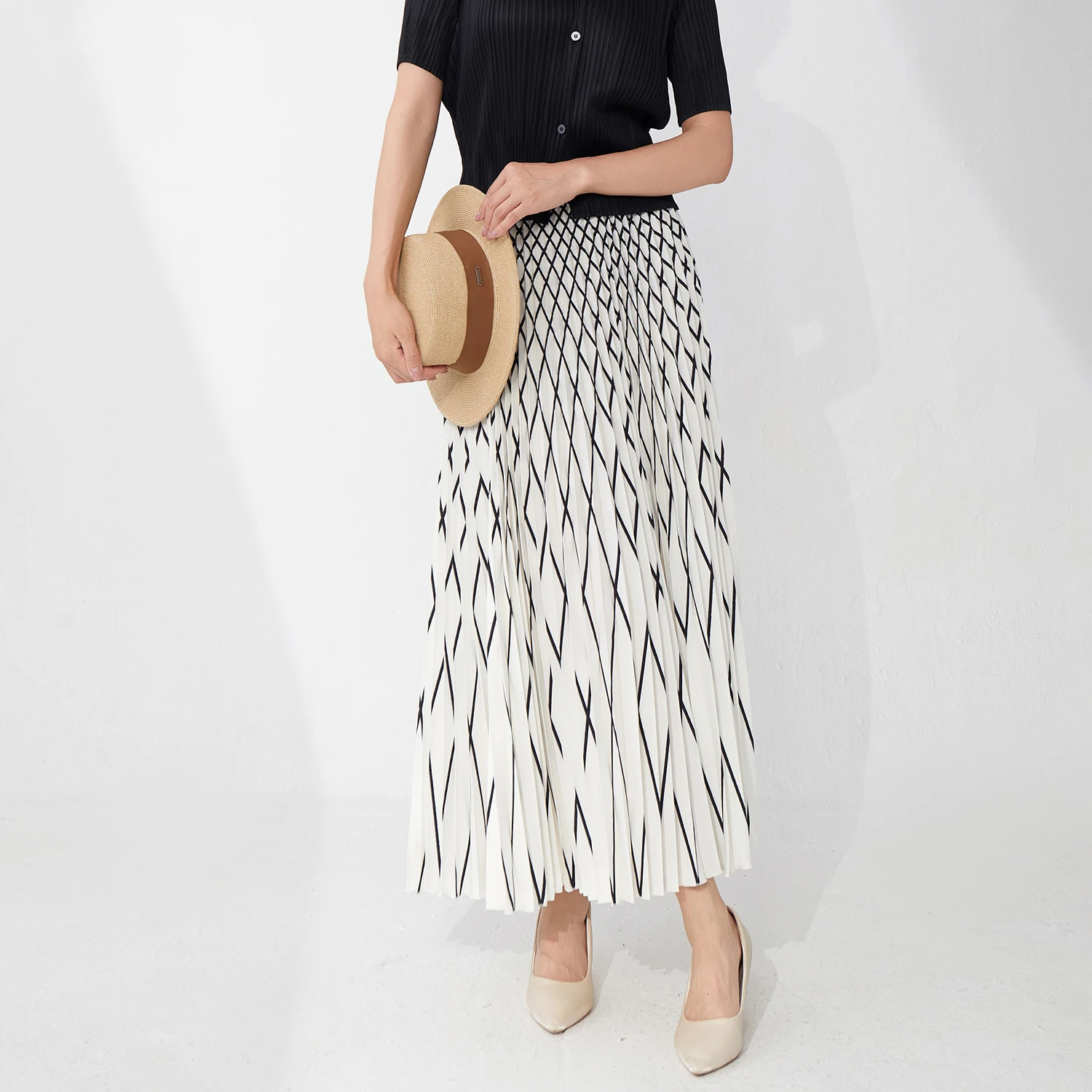 Wholesale Women's Clothing Ladies Pleated Skirt Design Summer Elegant Striped Style A-line Skirt Miyake Skirt