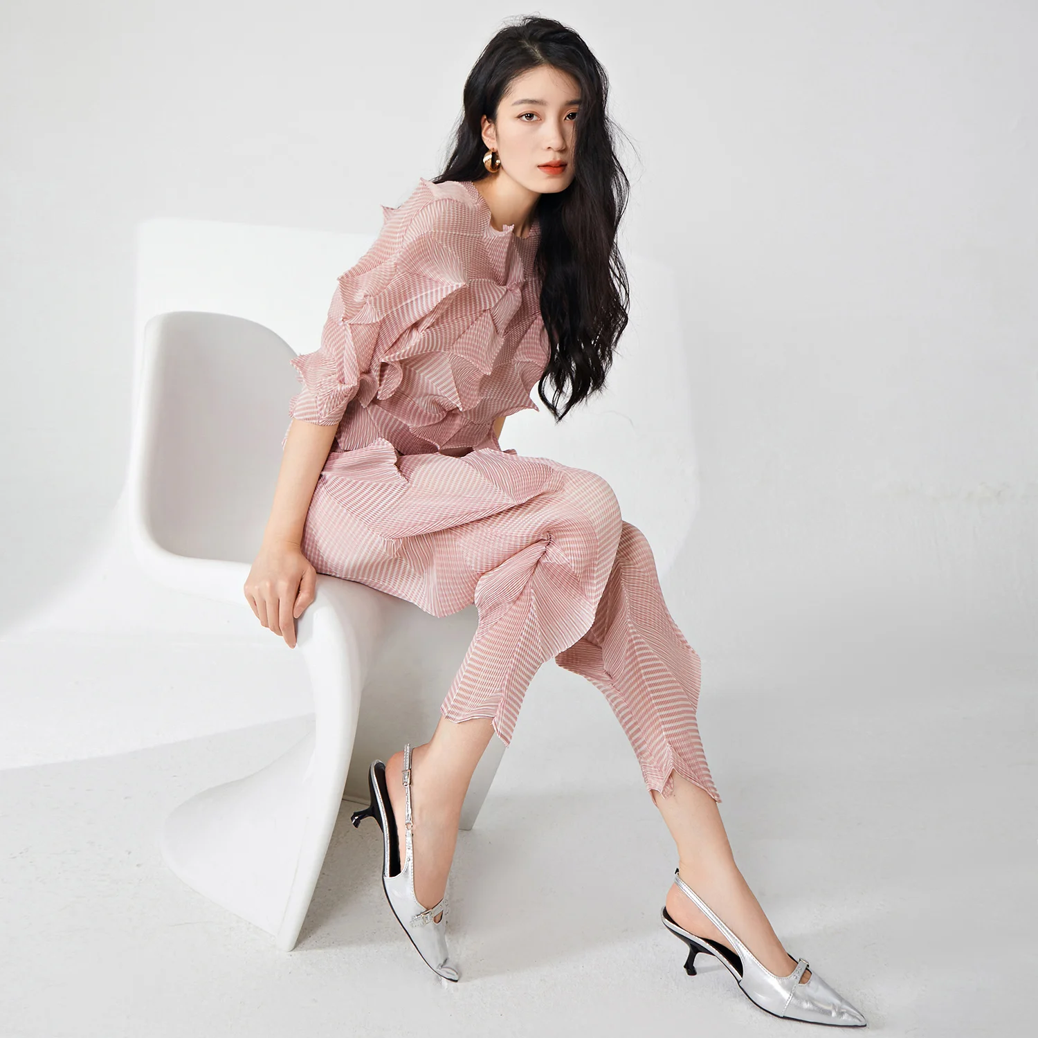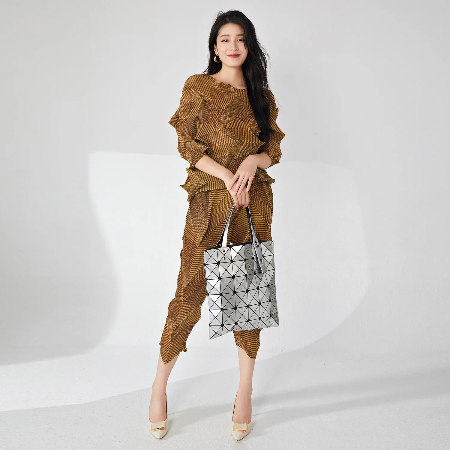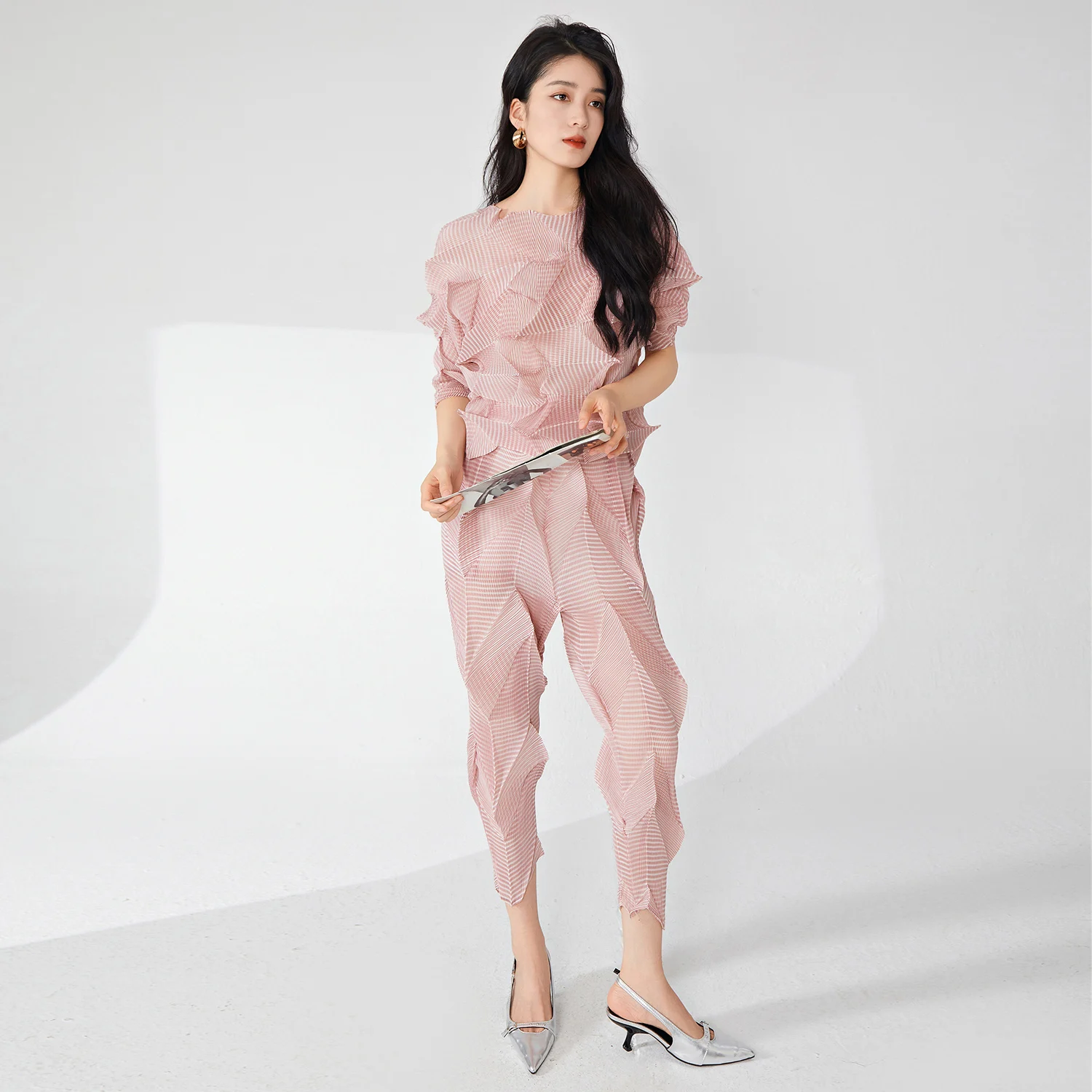 Hot-Selling Women's Two-Piece Set European American Design Fashionable Stretch Tops Wide Leg Pants Eco-Friendly for Ladies