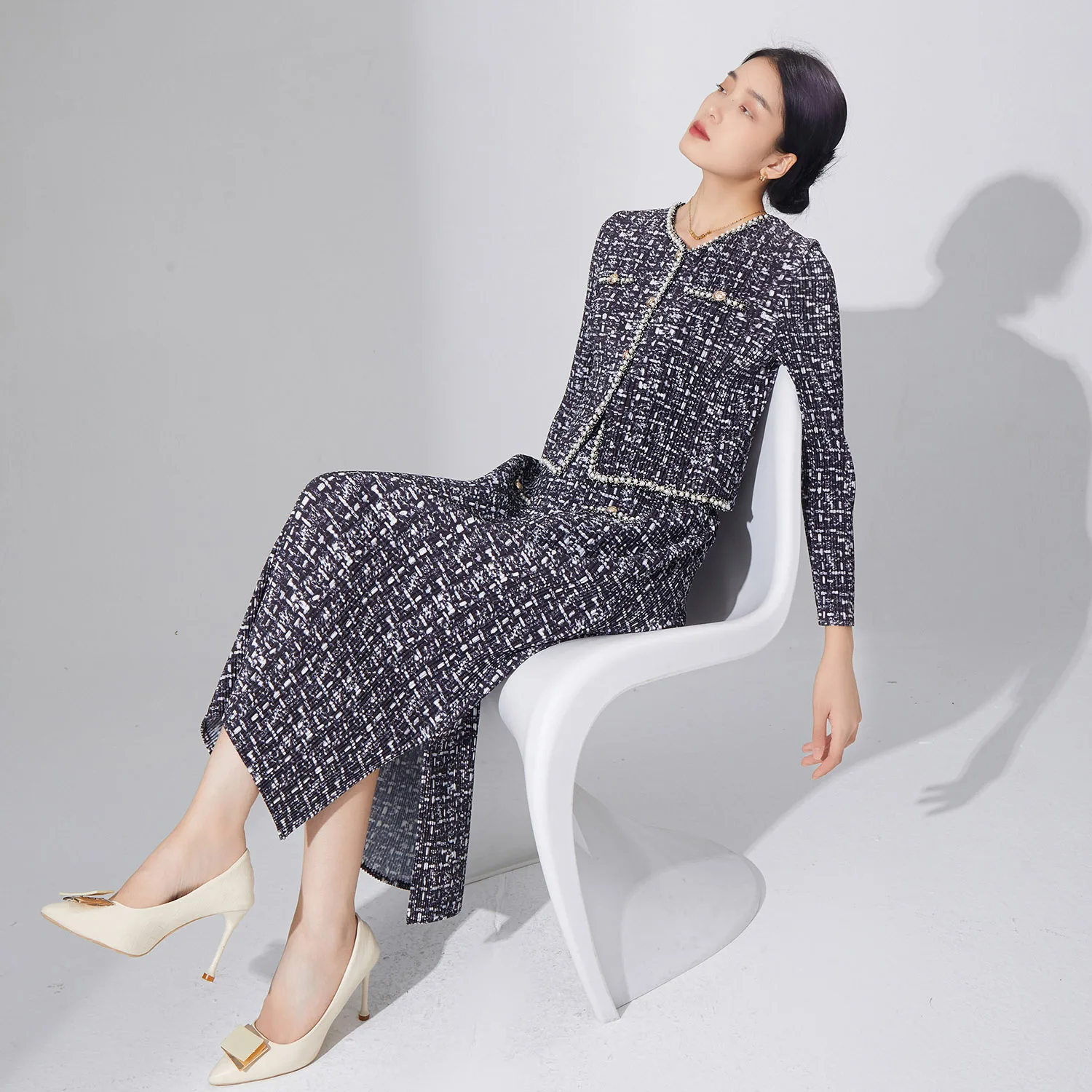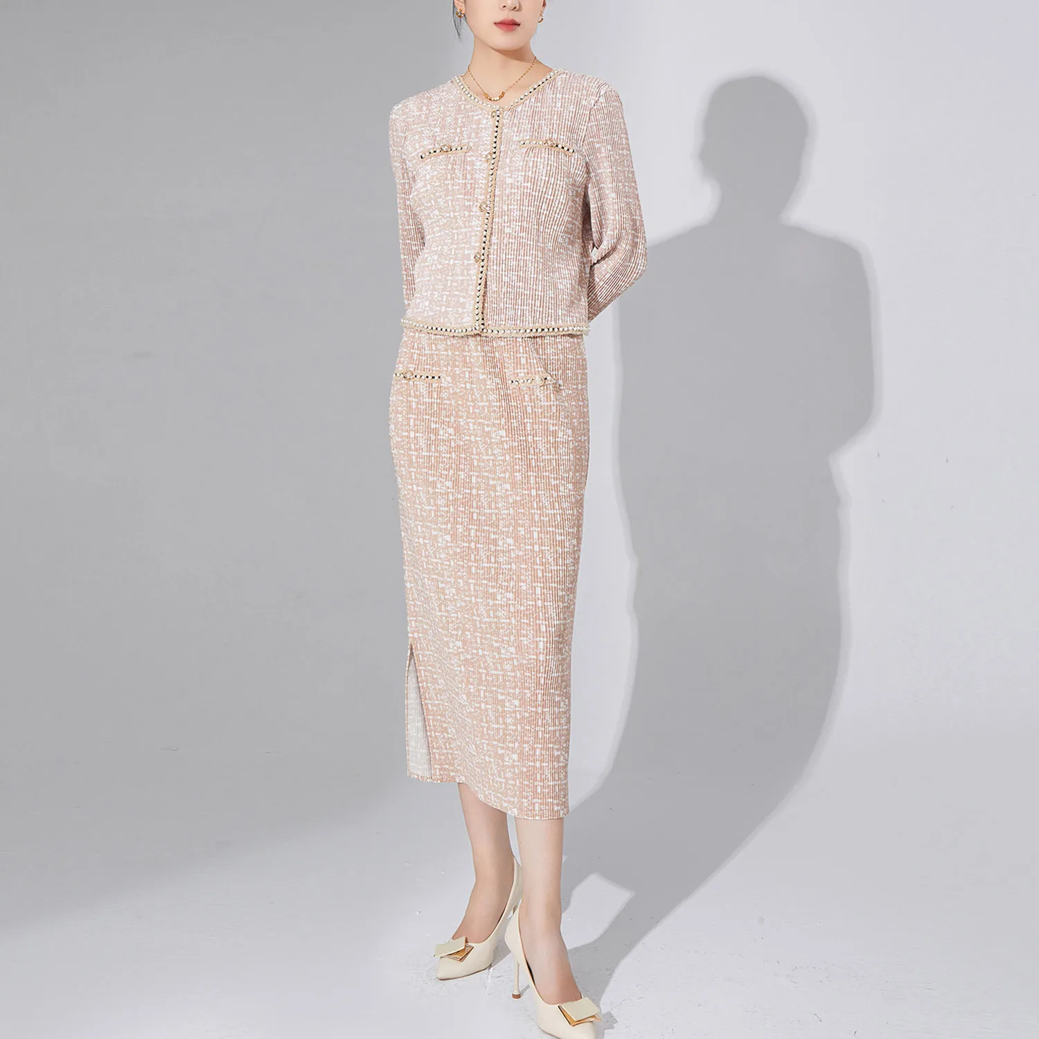 2025 Latest Design Women's Pleated Suit Pleated Cardigan Outerwear and Mid-Length Pleated Skirt Two-Piece Set