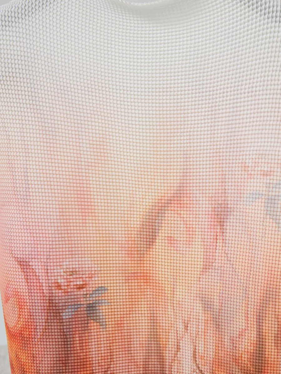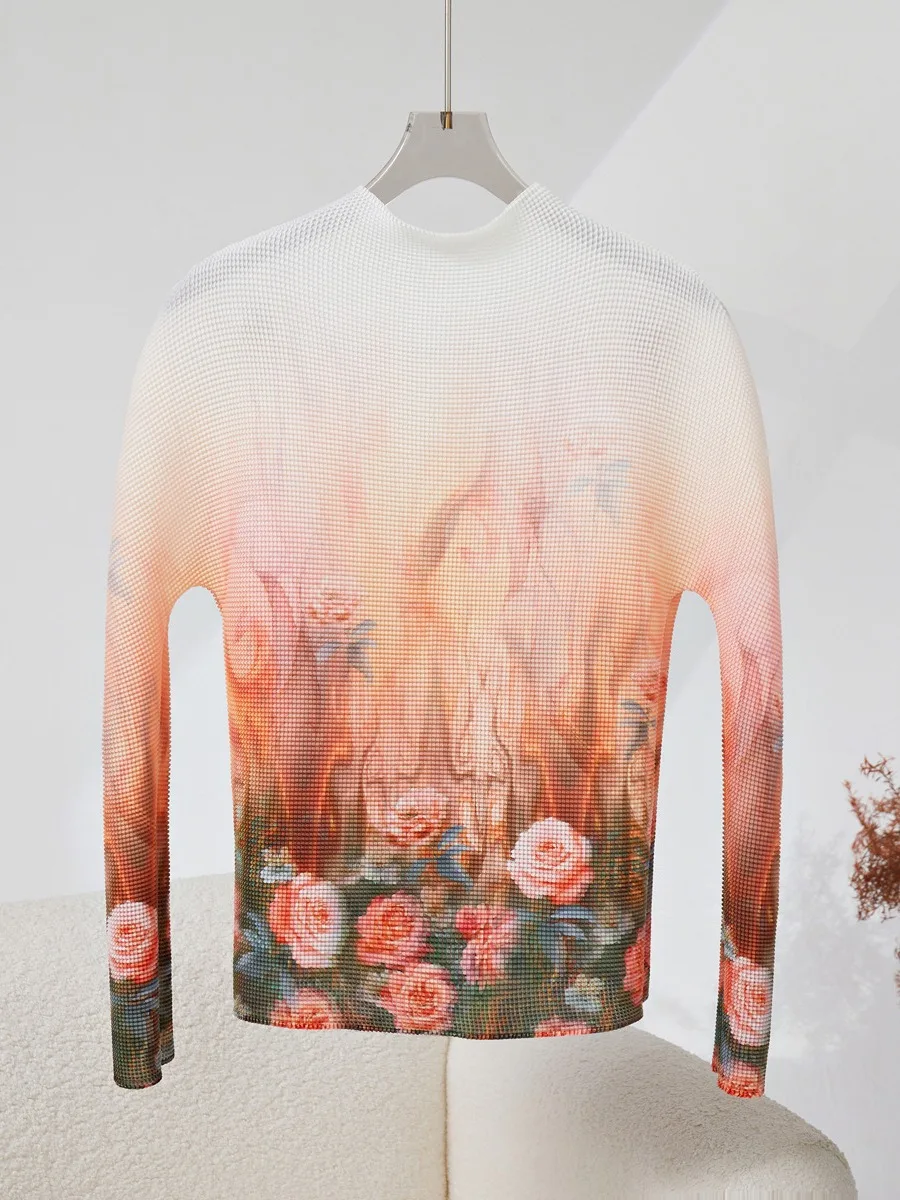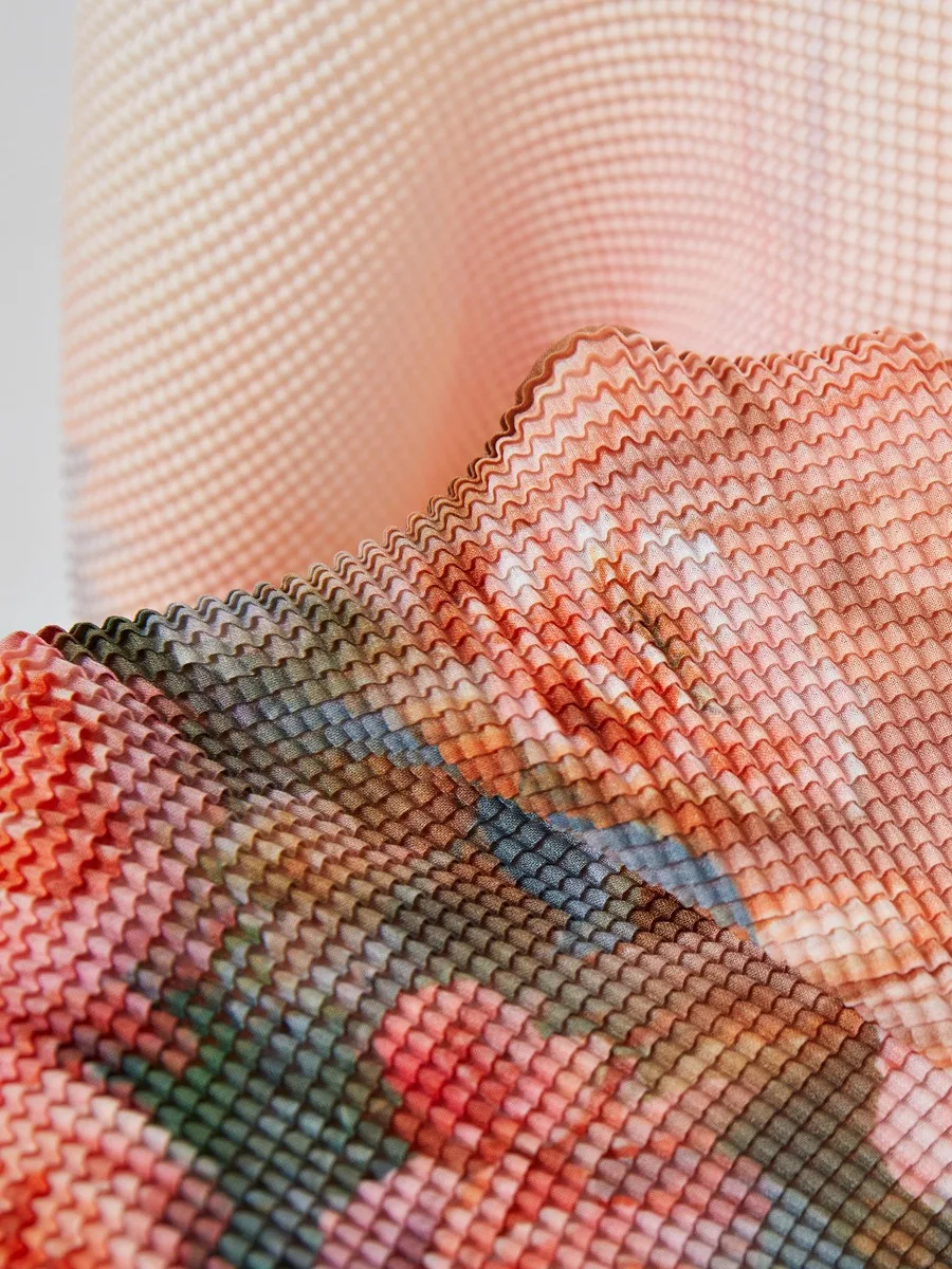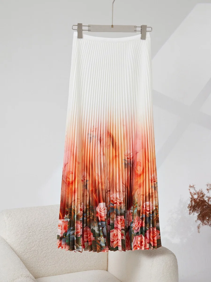 Miyake Women's Casual Fashion Set Pleated Printed Top and Long Skirt Elastic Stretch Fabric Two-Piece Set Elegant Style