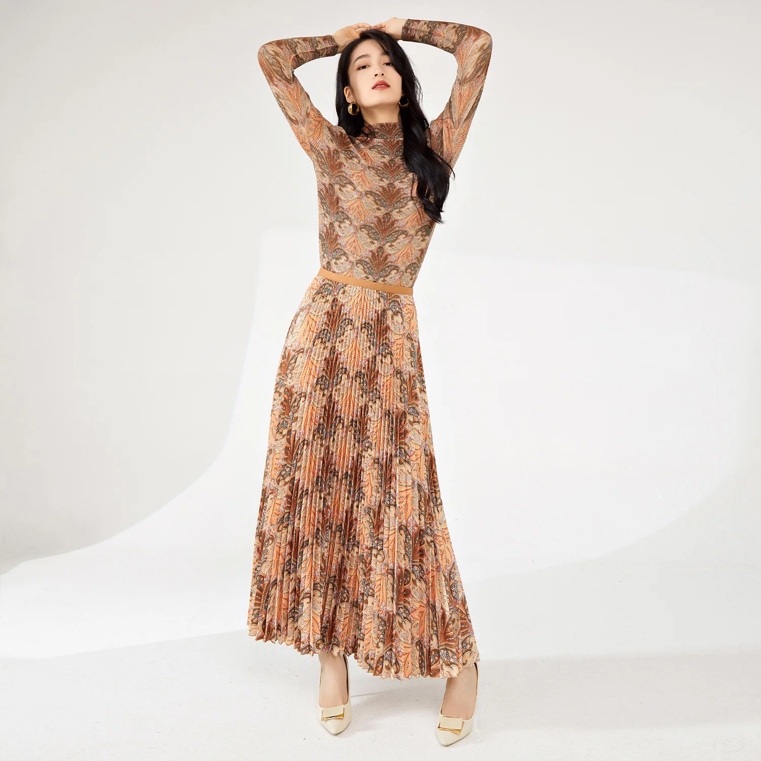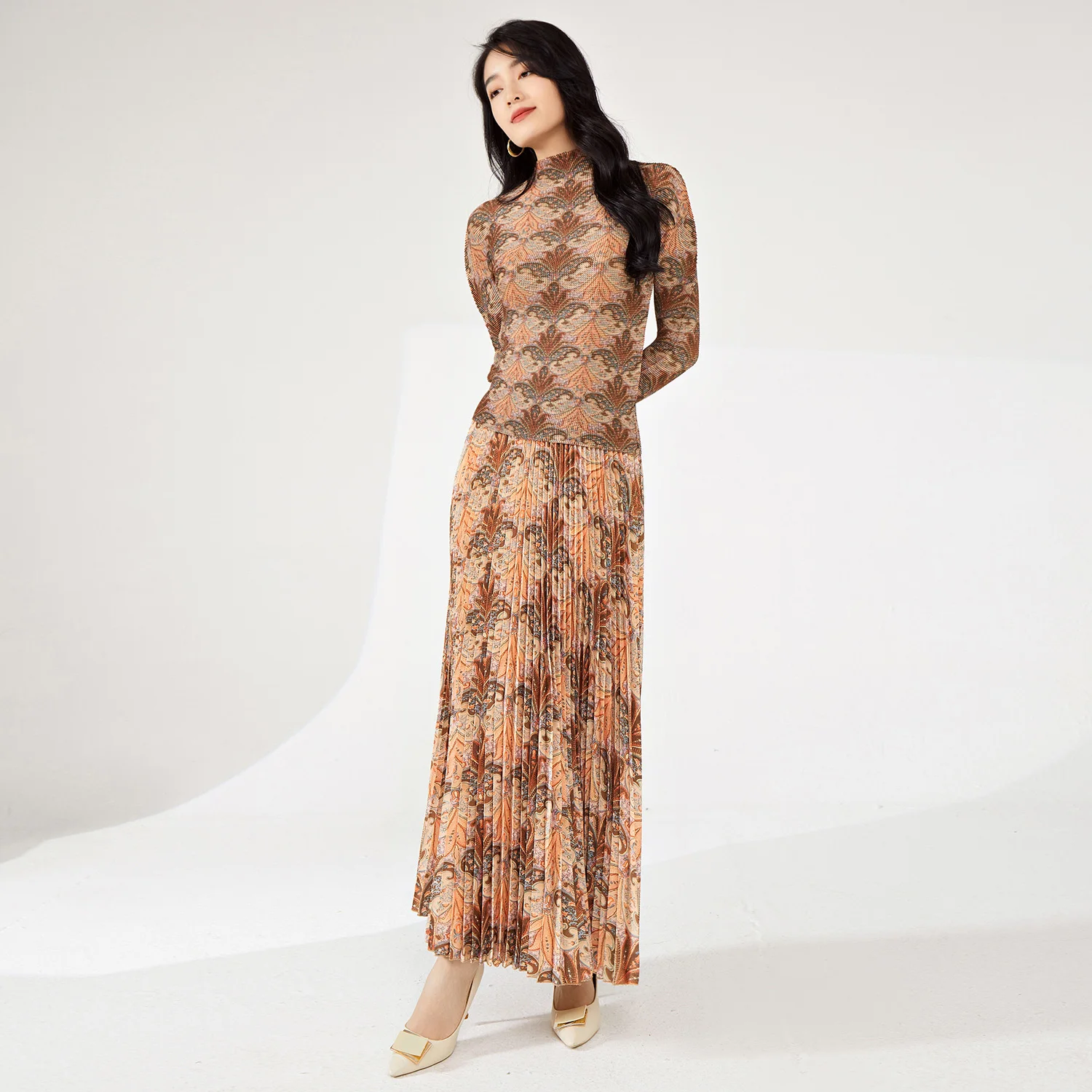 Latest Women's Fashionable Two-Piece Set Casual Stretch Printed Top and Skirt With Pleated Personality Pattern