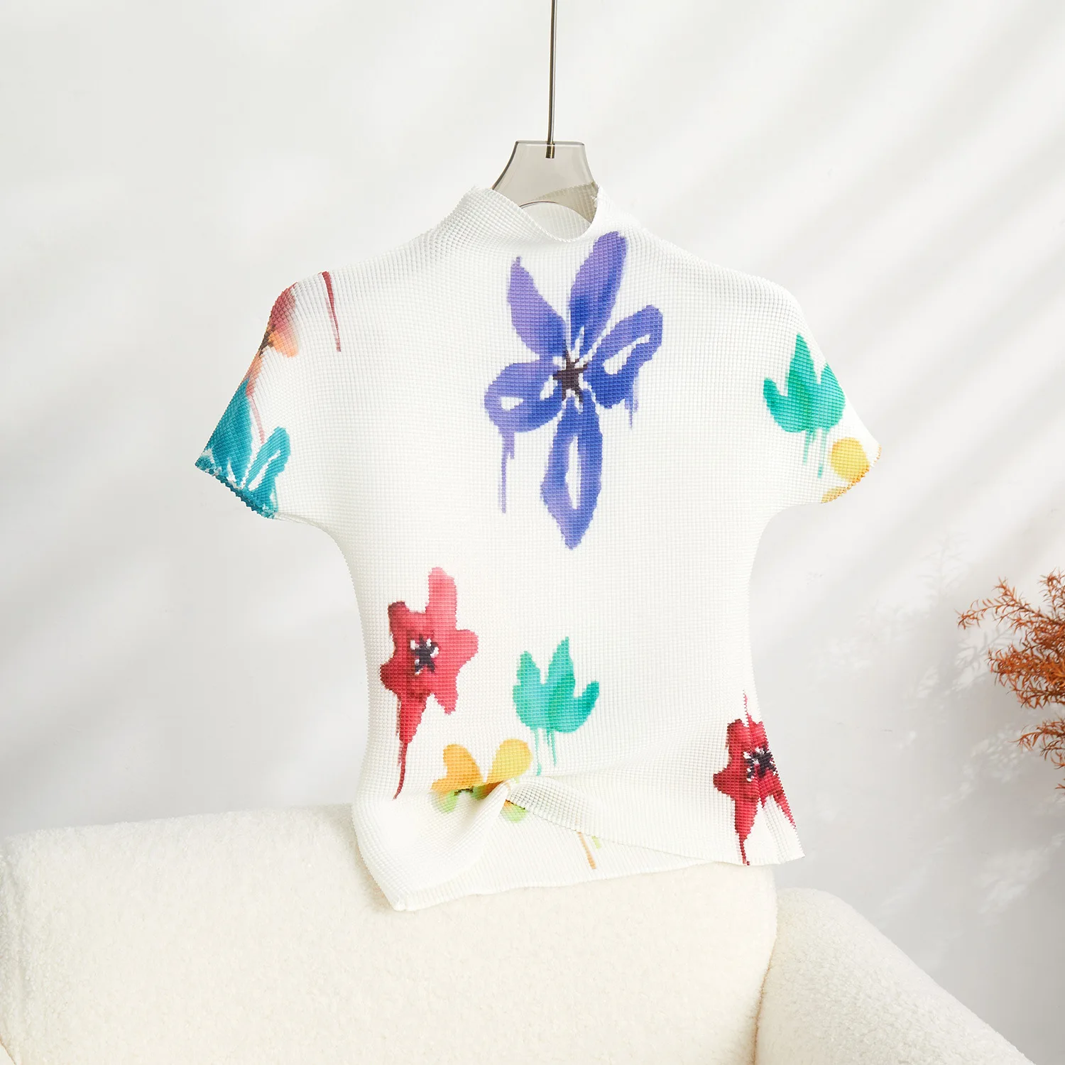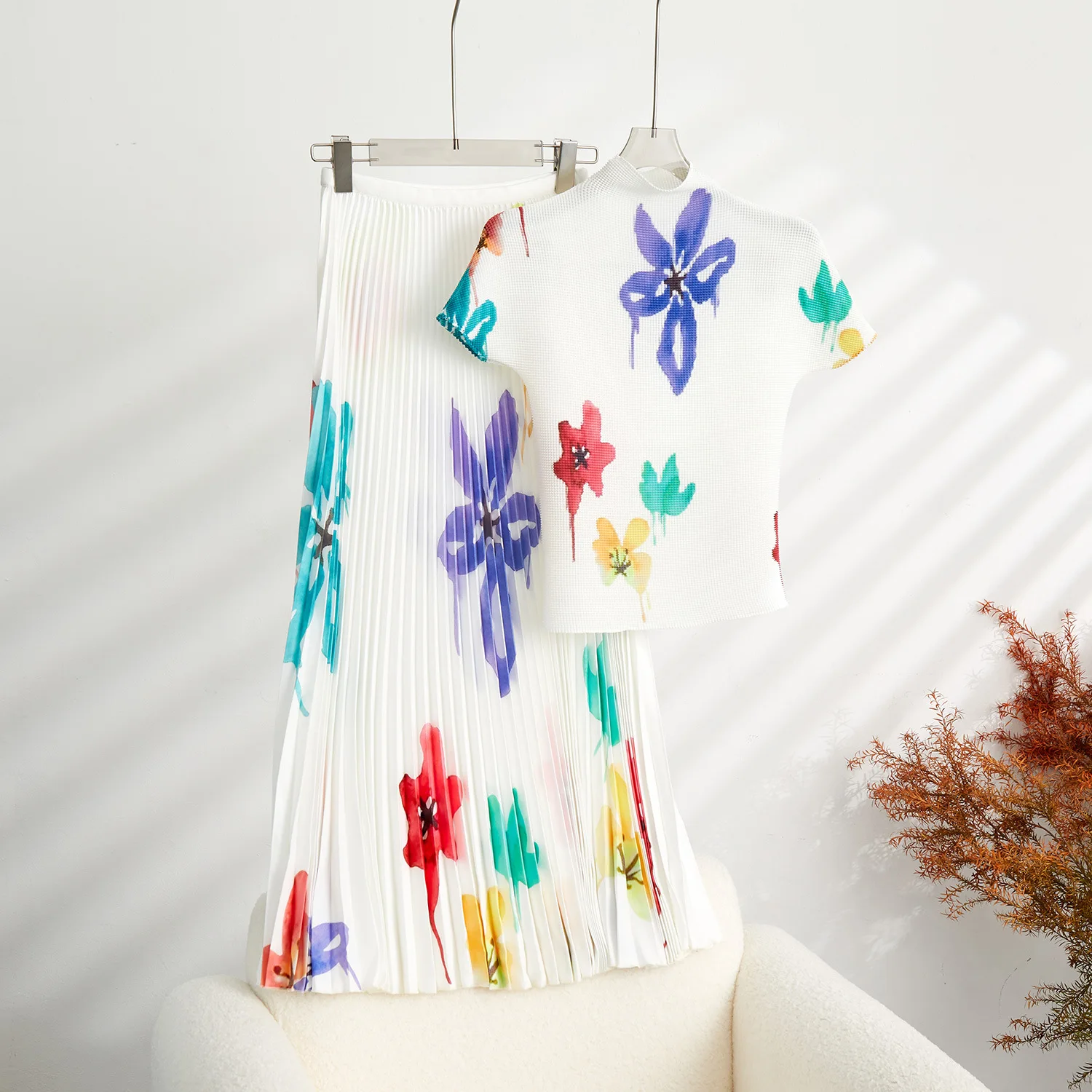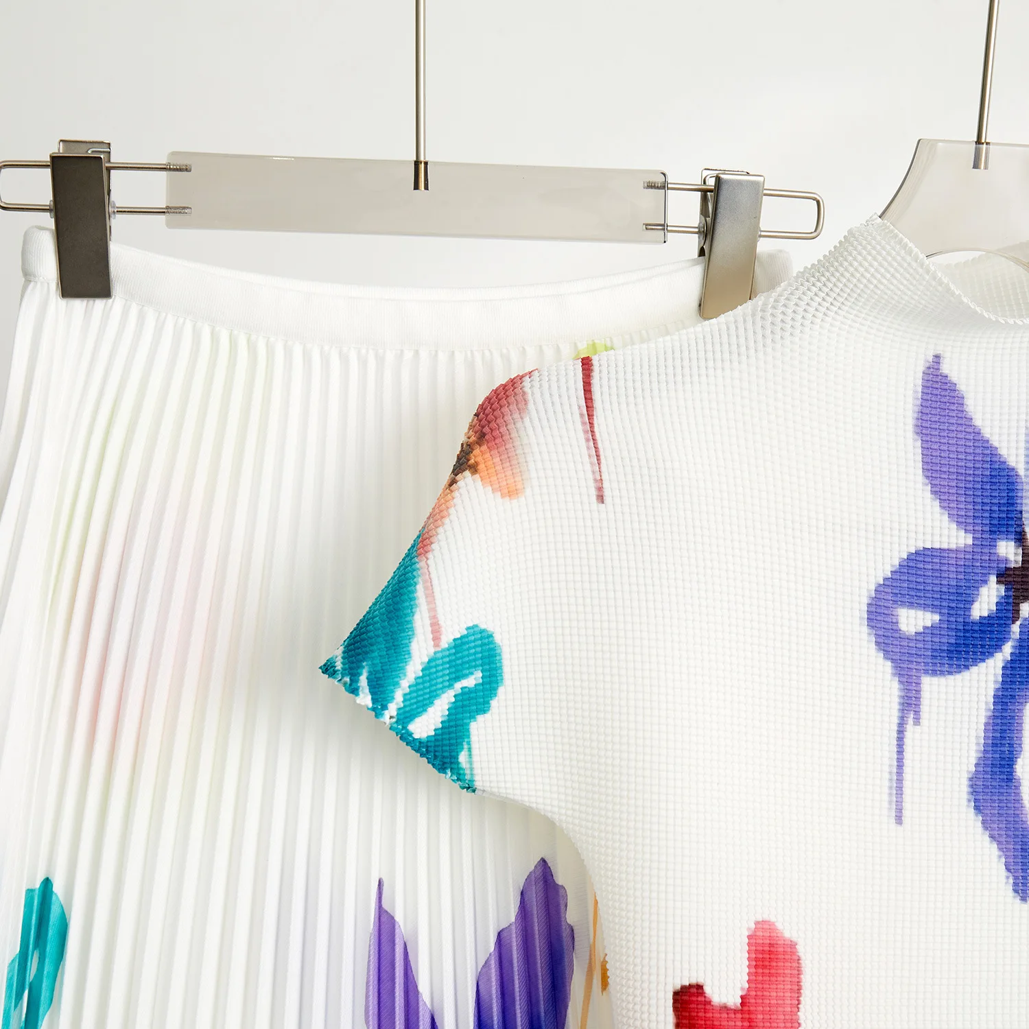 High Quality New Miyake Pleated Clothing Women Summer Pleats Mesh Top and Long Pleated Skirt Set 2-Piece Set