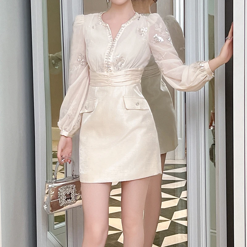 ZYHT 51115 Girl Formal Dress Embroidery Sequins Elegant Party Women Chiffon Mini Evening Cocktail Dress With Rhinestones