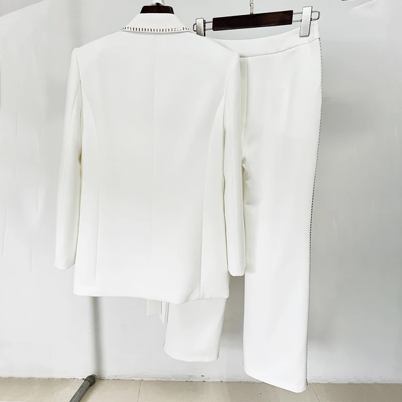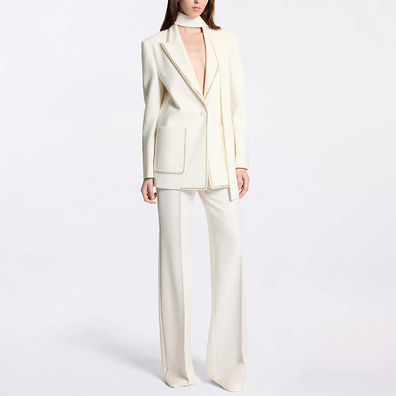 ZYHT 70158 Women Suit Set New European and American Star Fashion Scarf Hot Drill Loose Suit Jacket Pants Two-Piece Set