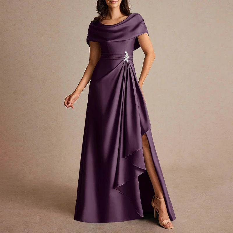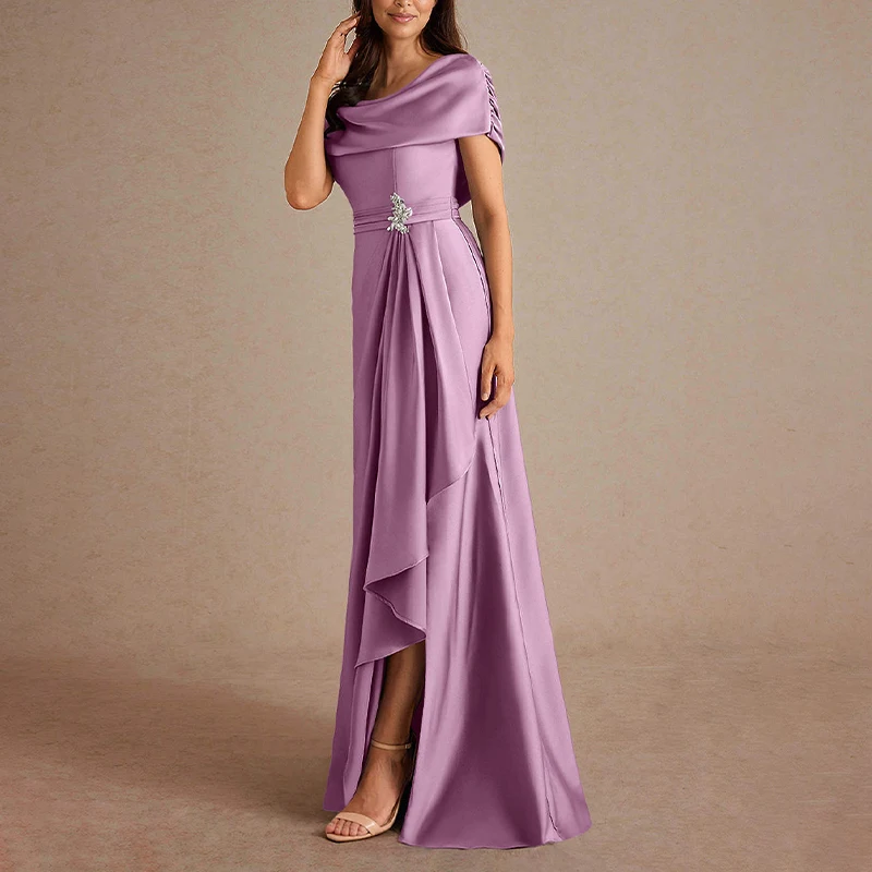 ZYHT 739890 Customize High End Simple Women Evening Dress Plus Size Satin Ruffle Asymmetrical Hem Skirt Dresses