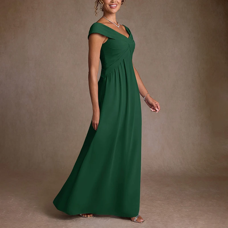 ZYHT 73985 Customization Manufacturer Wedding Women Clothes Green V Neck Maxi Mother Mon Elegant Evening Dress