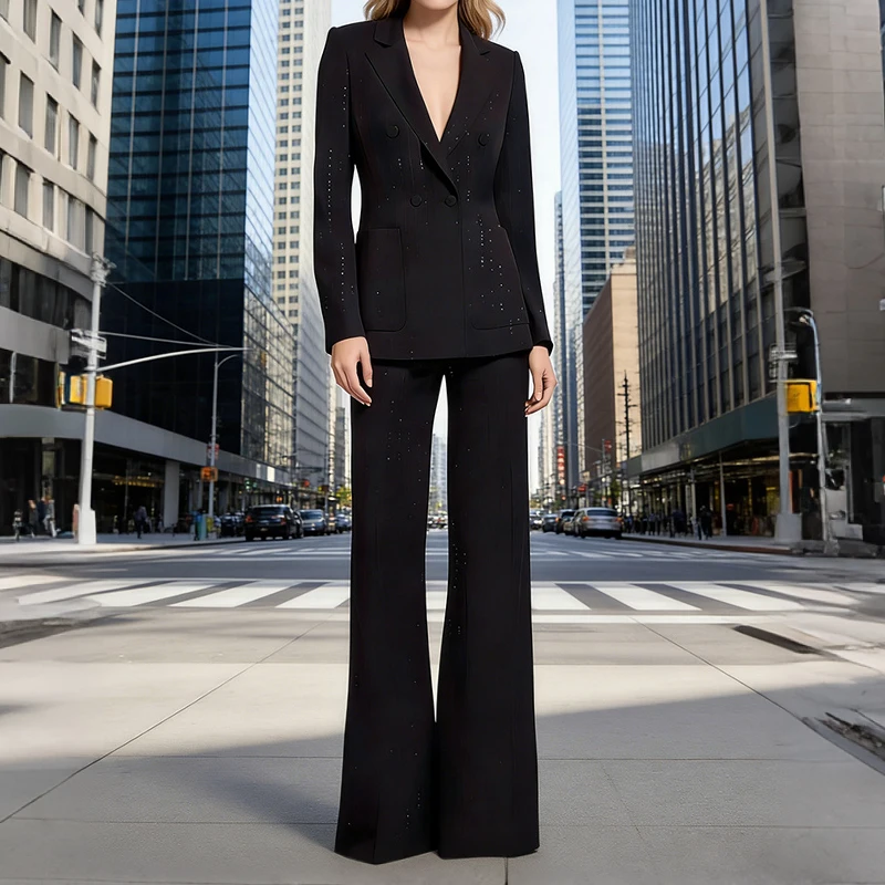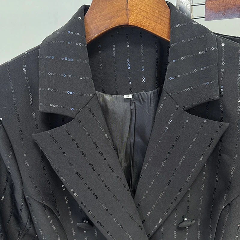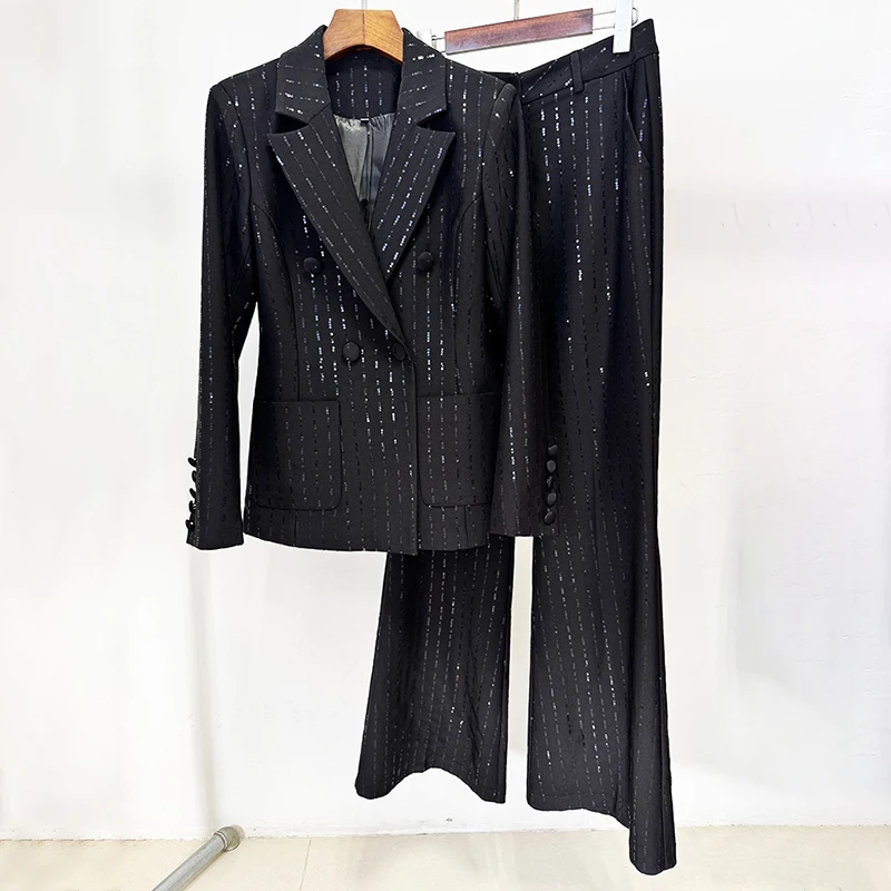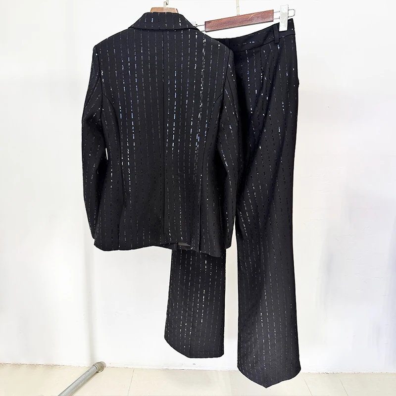 ZYHT 70150 Wholesale Early Spring New Arrival Fashion Sequin Blazer and Two-Piece Pants Suit Set for Women