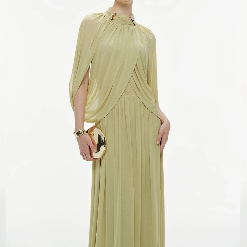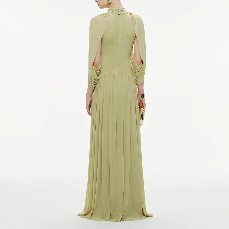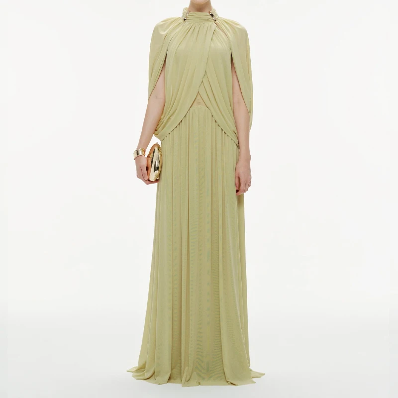 ZYHT 73978 2026 Summer Green Chiffon Floor Length Elegant Muslin Europe US Women Simple Design Causal Party Dress