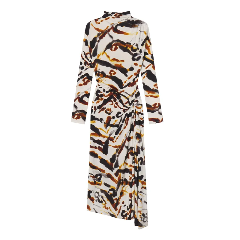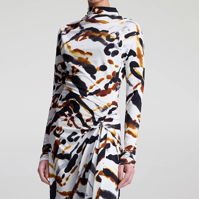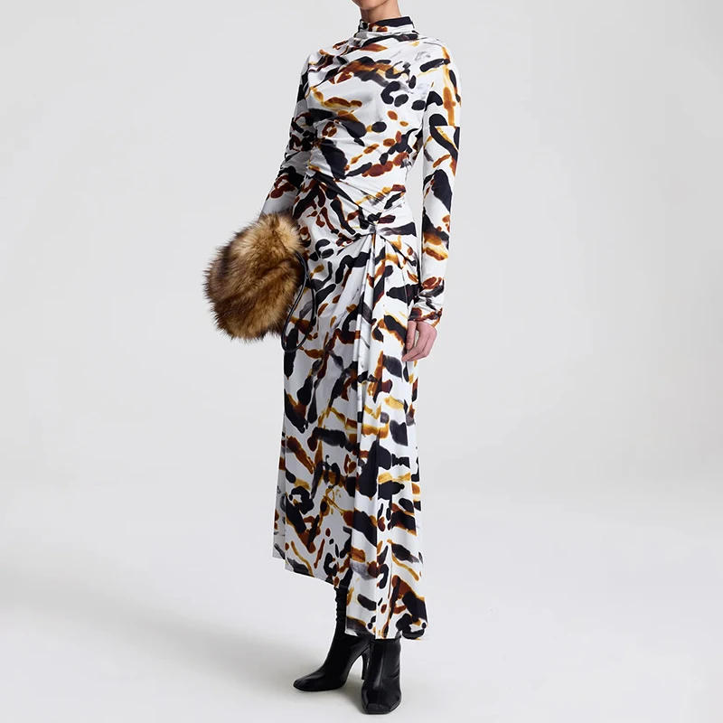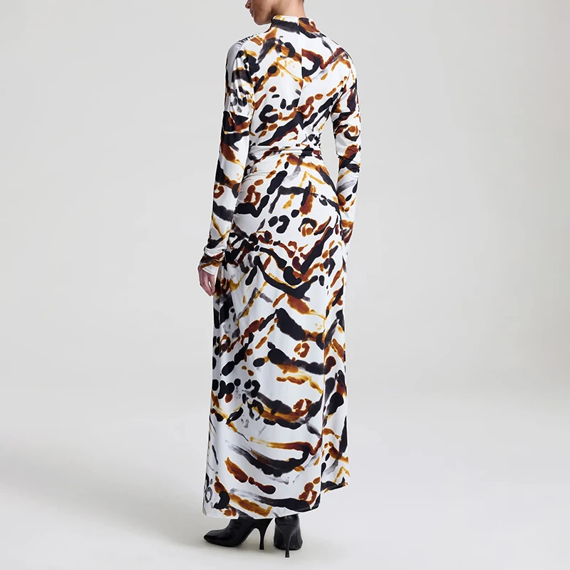 ZYHT 73973 Guangzhou Manufacturer Summer Spring New Collection Leopard Print Maxi High Neck Women Casual Comfortable Dress