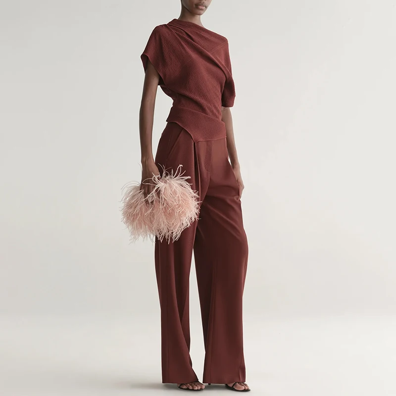 ZYHT 73972 Summer New Collection Short Sleeves Blouse T Shirt and Pants Trousers Formal Casual Suit Set