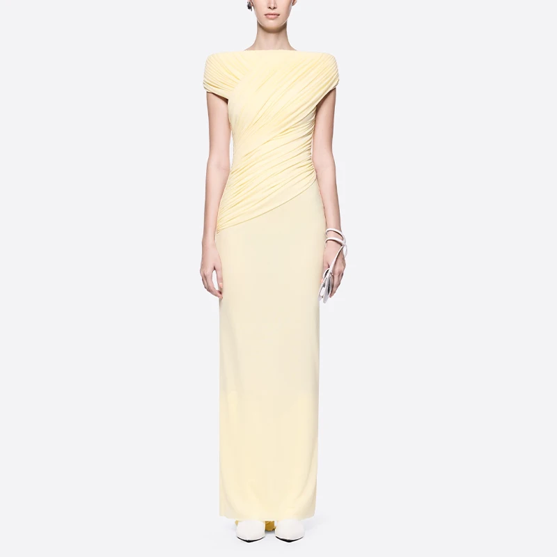 ZYHT 73845 Women's Maxi Dress Asymmetrical Casual High Street Fashion Party Solid Summer Pleated Long Dresses for Ladies