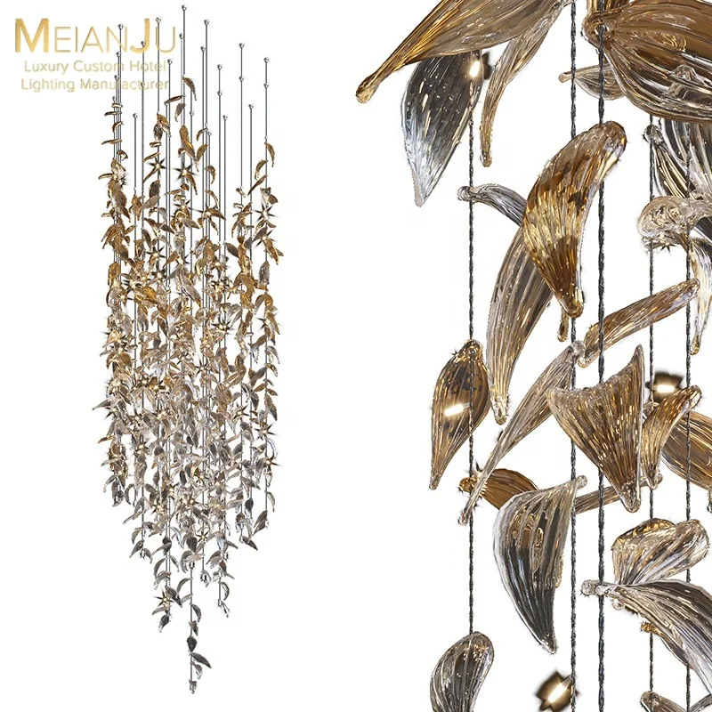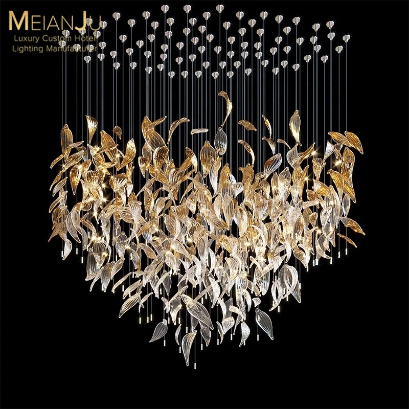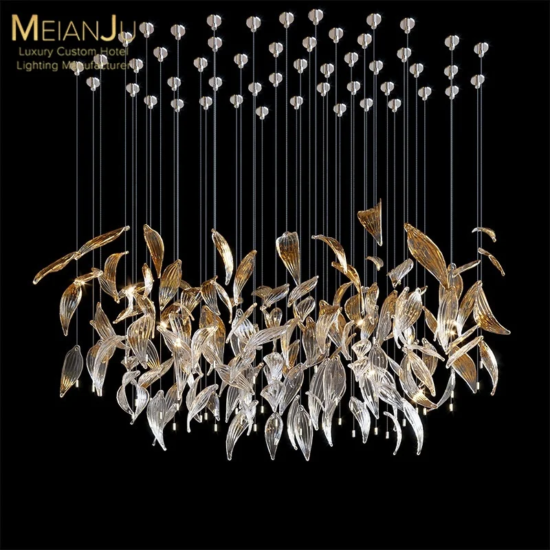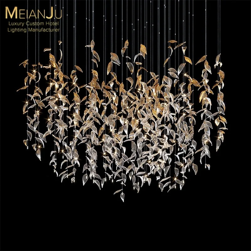 Custom Metal Leaf Design Chandelier Adjustable Height Easy Hanging Installation for Hotels Sales Offices Banquet Halls Front
