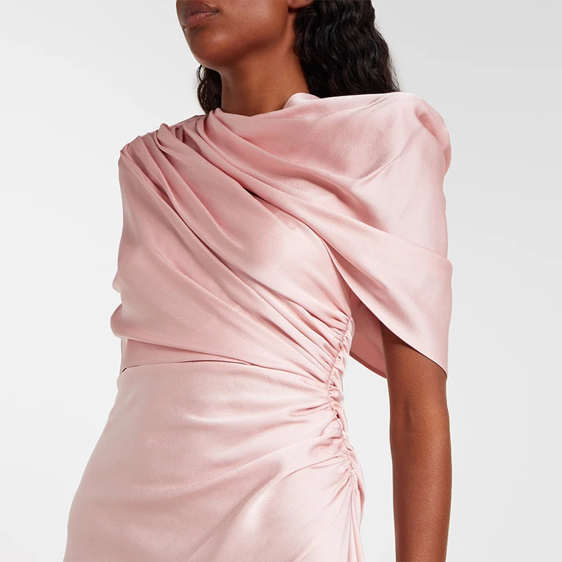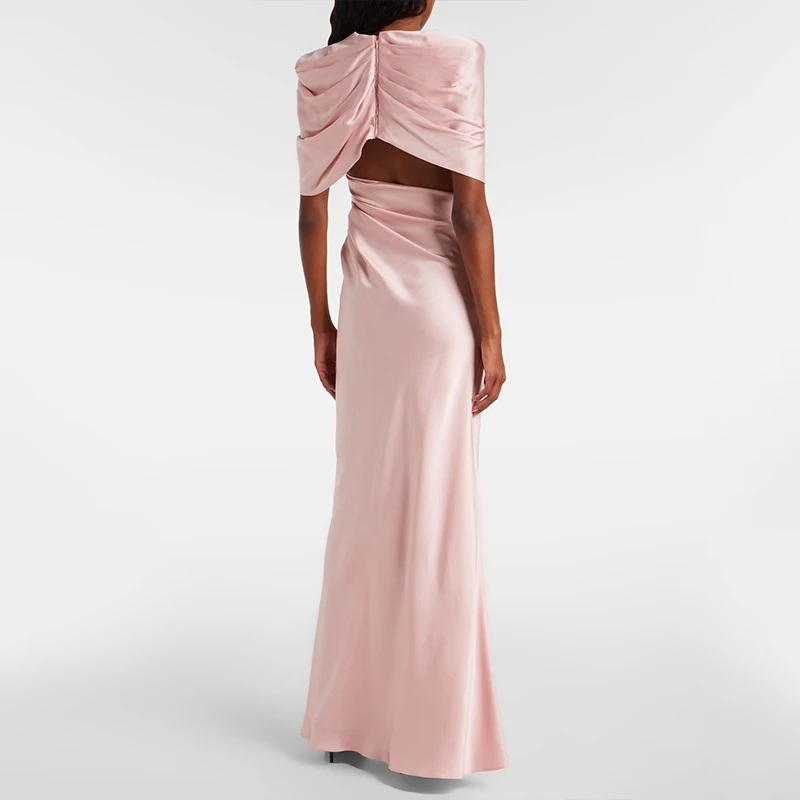 ZYHT 73421 Clothing Factory Elegant Women Mermaid Long Party Dresses Sexy Formal Gown Satin Pink Summer Evening Dress